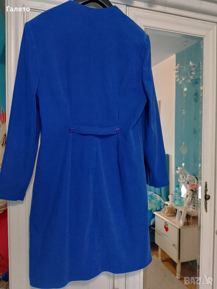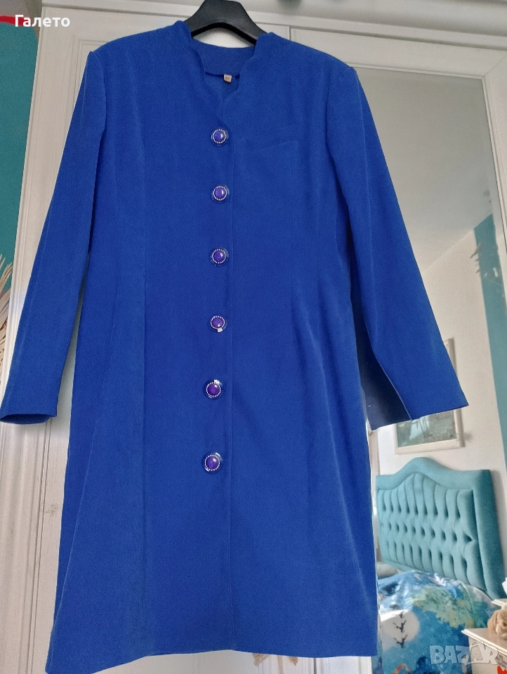 Горница тип манто синьо кадифе с еластичност и красиви копчета, размер XL в добро състояние,няма забележки! Цена 10 €