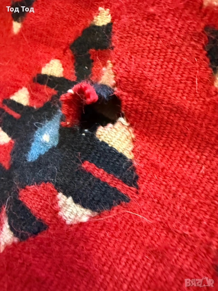 Продавам чипровски килим с размери 300/210. На две места по бордюра има зацапано и една дупка.