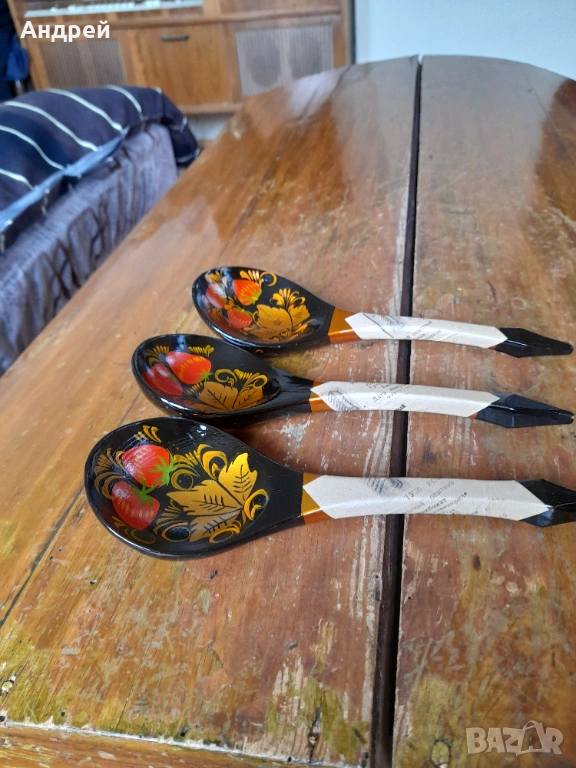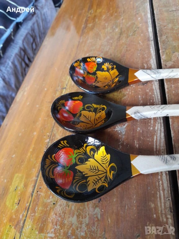 Стари Руски дървени лъжици,хохлома #7 → Обява 54313729
