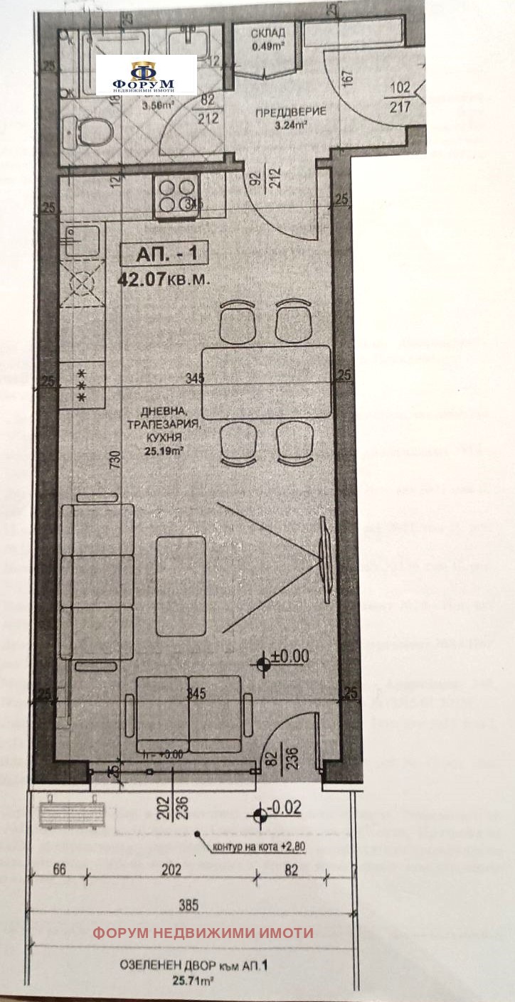 Ексклузивно от ФОРУМ имоти. Предлагаме на Вашето внимание готов партерен апартамент с двор, находящ се в нова сграда с АКТ16, в близост до СОУ 'Константин Величков'.