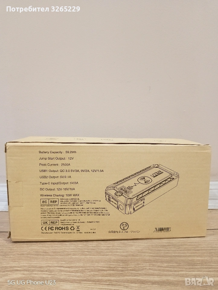 Нов Автомобилен стартер за кола JS-4 .Със компресор за помпане на гуми и фенер.