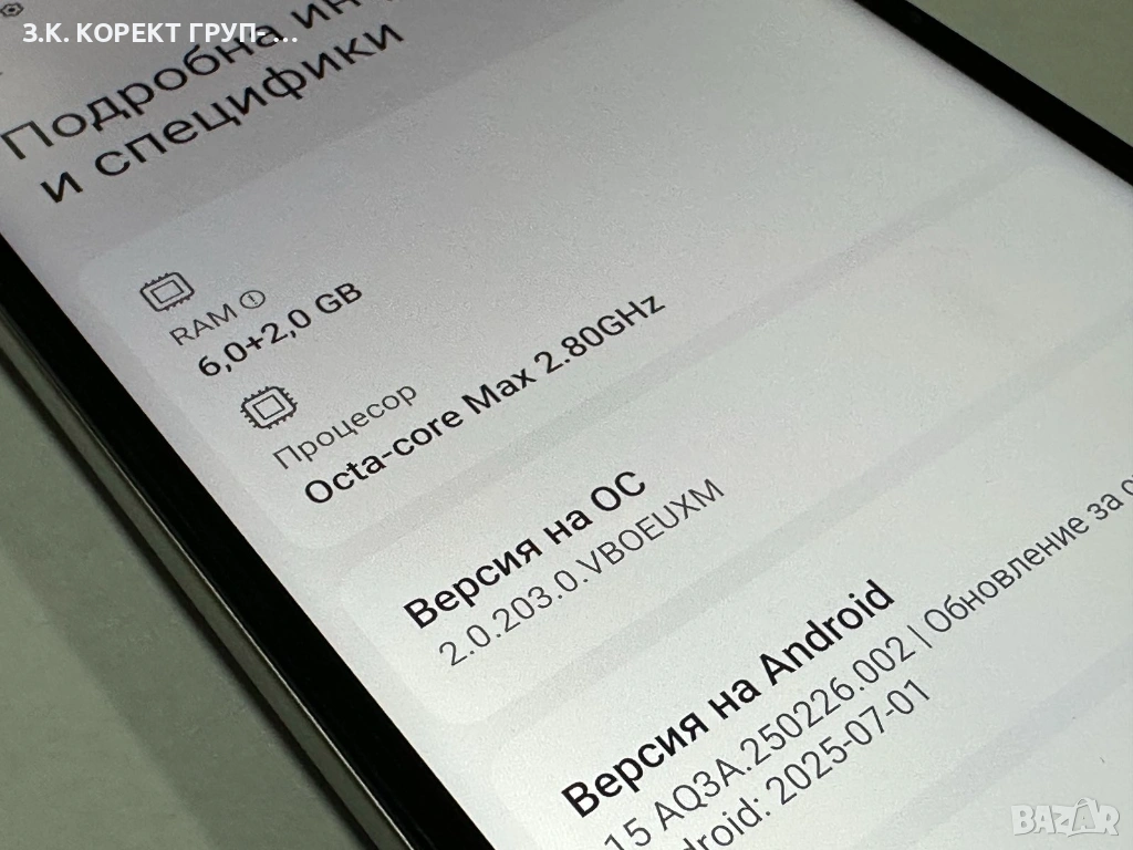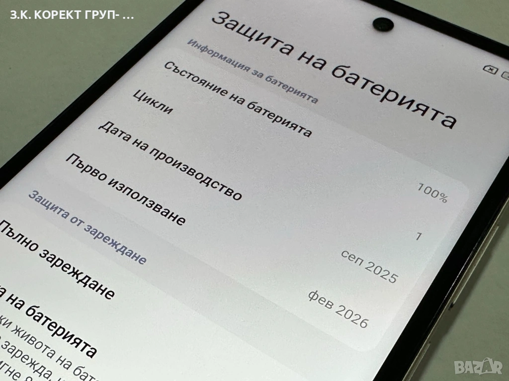 Телефонът е в състояние неразличимо от нов – без забележки по дисплея или корпуса. Ползван е съвсем кратко, като батерията е едва на 1 цикъл (практически нова).