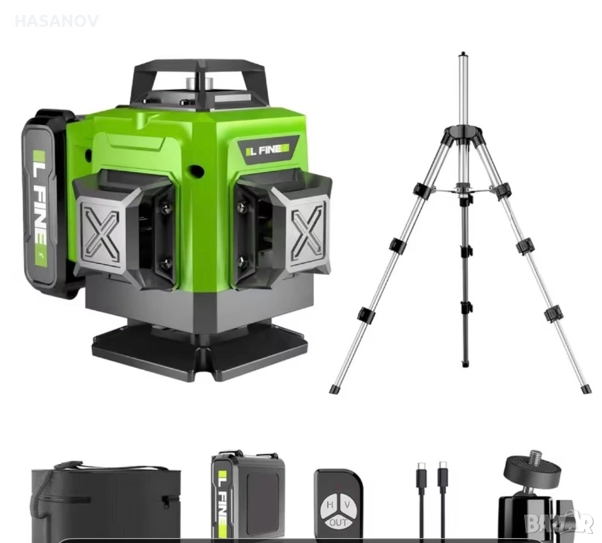 Заглавие: [ЧИСТО НОВ] 4D Лазерен Нивелир 360° – 16 Зелени Линии + Тринога и Type-C