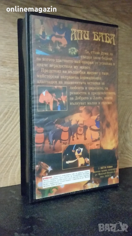 Продавам видеокасета " АЛИ БАБА " или известна още като Али Баба и 40-те разбойника . " Става дума за онзи бедняк , на когото щастието най-накрая се усмихва в иначе нерадостния му живот " Озвучена на български език. Работи отлично. Изпращам с Еконт или Спиди. С Еконт изпращам с 10 % отстъпка от цената на доставката.