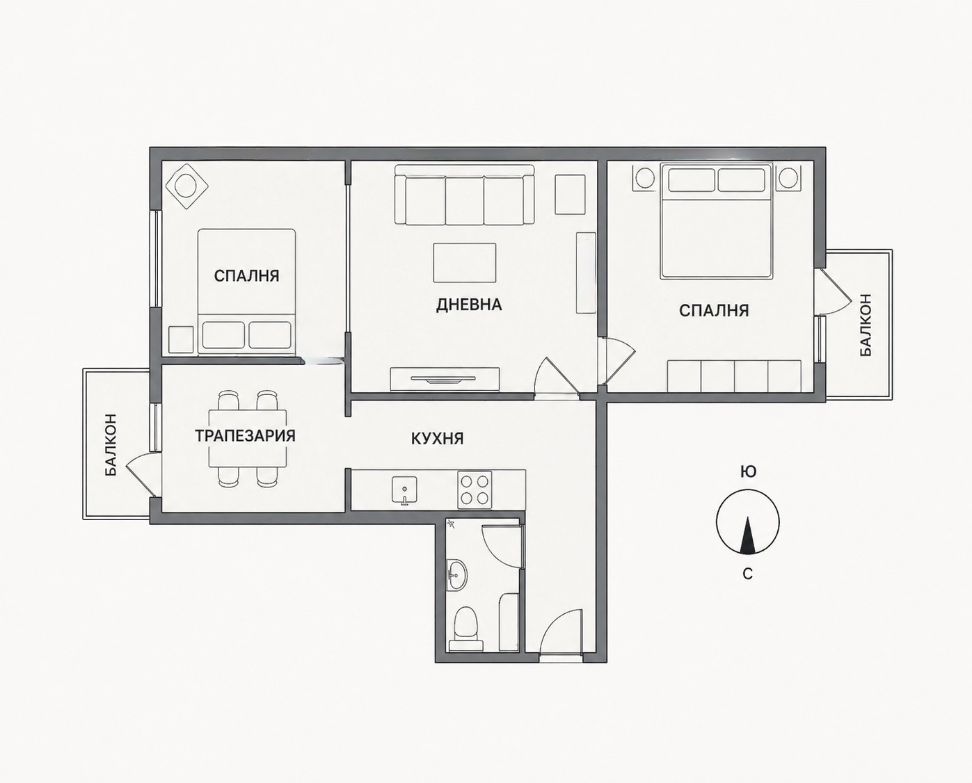 Апартаментът предлага простор, светлина и отличен потенциал както за живеене, така и за инвестиция.