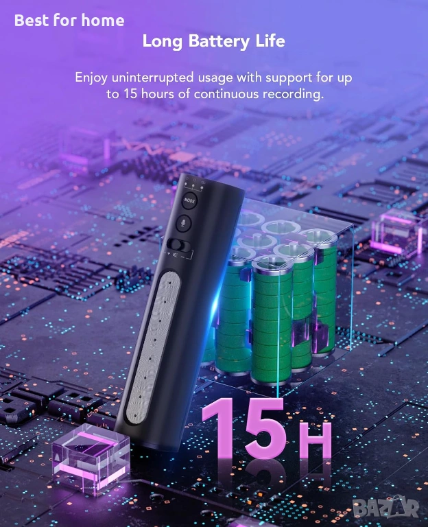 Микрофон NUROUM AM10B, 15 часа живот на батерията, множество режими на работа, шумопотискане, USB Plug & Play.