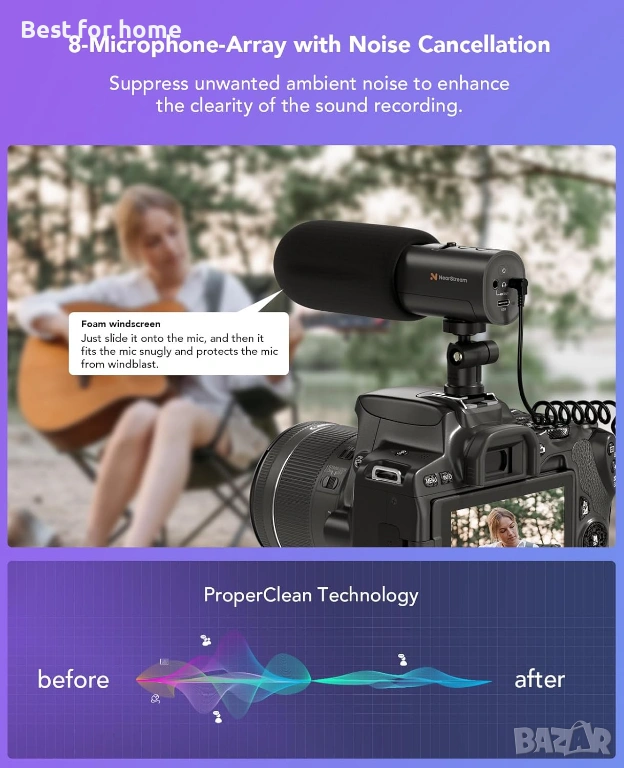 Намаляване на шума за отлично качество на звука: Благодарение на технологията за автоматично регулиране на усилването (AGC), този микрофон с камера се отличава с кристално чист и лесно разбираем говор на разстояние до 3 метра, независимо от разстоянието на говорене. Интегрираният алгоритъм за намаляване на шума с изкуствен интелект ефективно филтрира смущаващия фонов шум, като улавя ясно само човешкия глас.