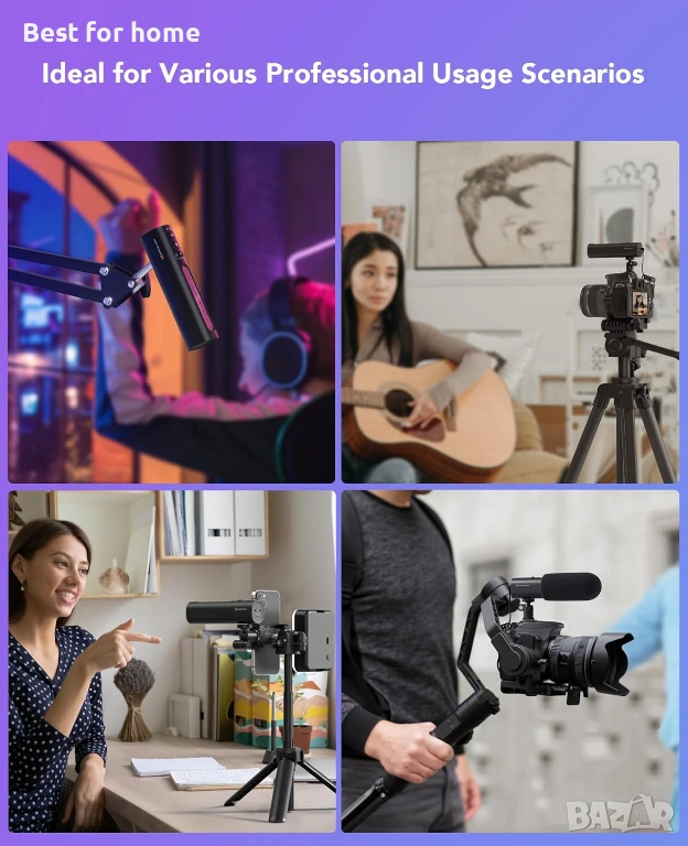 15 часа живот на батерията: Този микрофон за движение е оборудван с мощна батерия, която предлага впечатляващите 15 часа работа - повече от достатъчно за цял ден запис. Няма да се налага да се притеснявате за слаба батерия по време на записите си. Той е удобен спътник за влогове и заснемане на филми в движение с вашата камера, както и за подкастинг и стрийминг на вашия компютър на закрито.