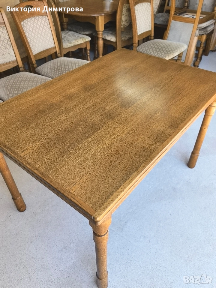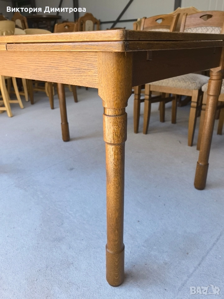 Разтегателна трапезна маса ✨️ 2 броя странични разширения ✨️ Правоъгълна 📚 при поръчка: код 01-147 ⚜️⚜️⚜️ Цена: 135.00 € ⚜️ Статус: Налична ⚜️⚜️⚜️ Размери: Дължина: мин. 120 см. / макс. 208 см. Широчина: 81 см. Височина: 75 см. ⚜️⚜️⚜️ Втора употреба! Състояние: В много добро ретро състояние! 👉 Артикулът е Втора употреба, закупен е от домакинство в Германия и като такъв е възможно да има леки следи от употреба и/или износване! Внос Германия! 🇩🇪🇩🇪🇩🇪