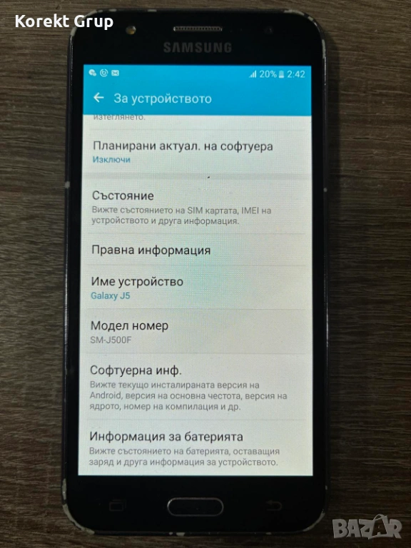 Samsung Galaxy J5 в приемливо състояние може да се види на място за гр.Варна или да се изпрати по Еконт с преглед и тест..
