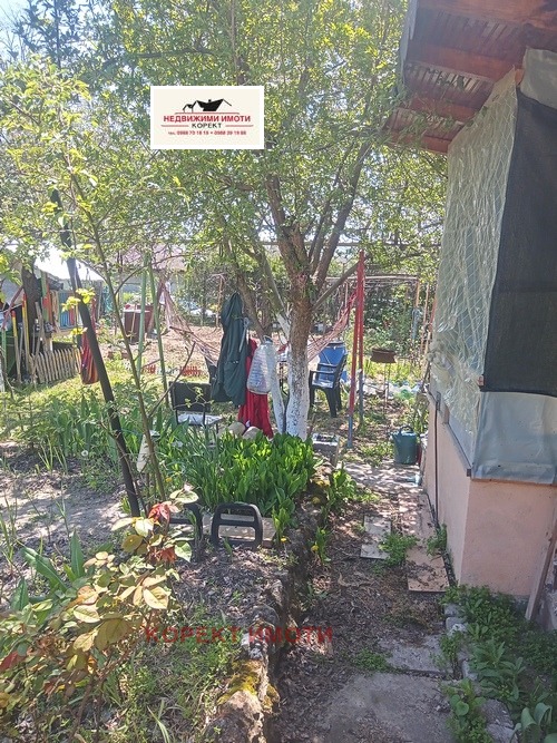 състояща се от две стаи и склад. В парцела каменни основи от стара къща и разрешение за извършване на ремонтни дейности. В имота партиди за ток и вода. В съседство постоянно живеещи.
