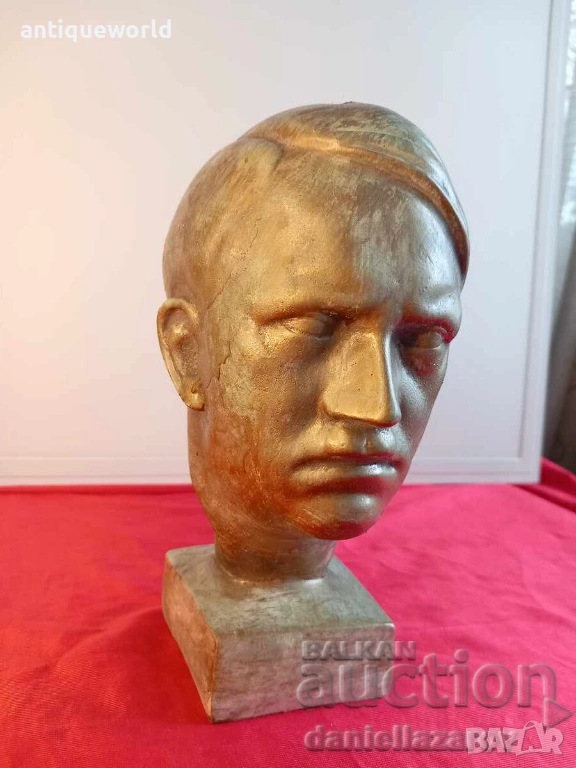 Масивен Бюст на Немския Нацистки Лидер АДОЛФ ХИТЛЕР. Статутка, Фигура. Каменен Патиниран и Бронзиран.Отличен!