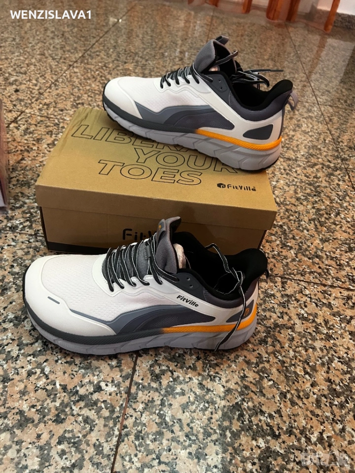 ходене FitVille с широка зона за пръсти се радват на свобода на движение на пръстите. Дизайнът с широки пръсти облекчава точките на натиск и намалява болката в краката, включително плантарен фасциит, плоскостъпие, „чукчести“ пръсти и други.