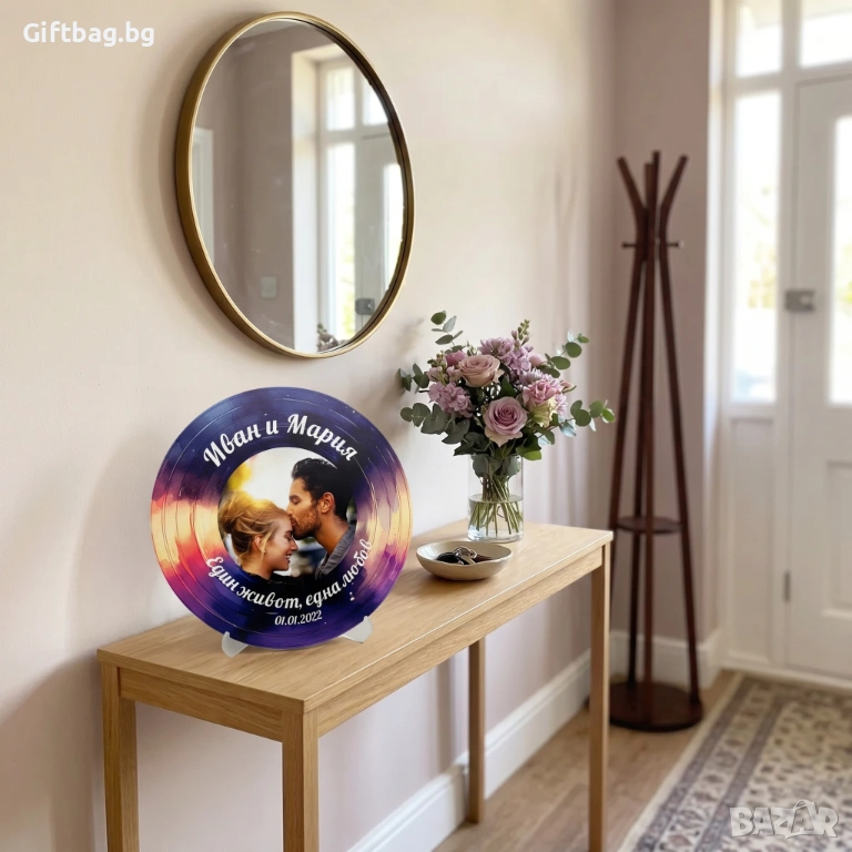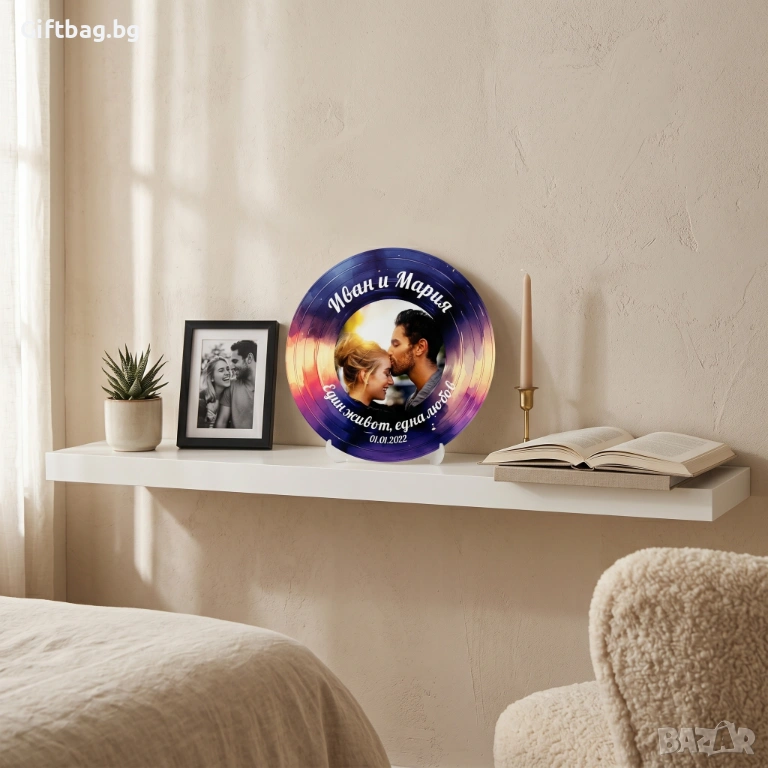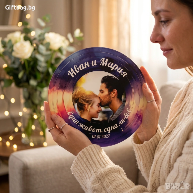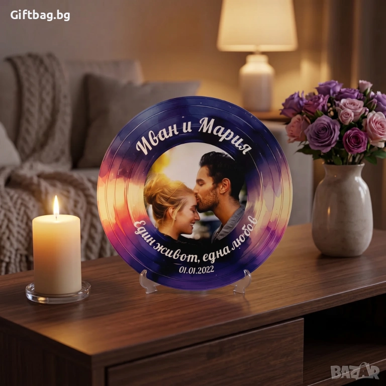 Има моменти, които не могат да бъдат описани – само почувствани. А този подарък е опит да се увековечи едно такова чувство. Лилавите и оранжевите тонове няма да избледнеят, а погледът към плочата винаги ще връща онзи момент – погледа, прегръдката, целувката по челото, която е струвала повече от хиляди думи.
