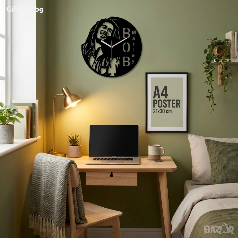 Ажурно изрязаният портрет улавя безпогрешно емблематичния образ на Marley. Това не е просто декорация – това е заявление за свобода, мир, музика и добри вибрации. Всеки път, когато погледнете колко е часът, ще чувате в главата си „No Woman, No Cry“ или „Three Little Birds“.