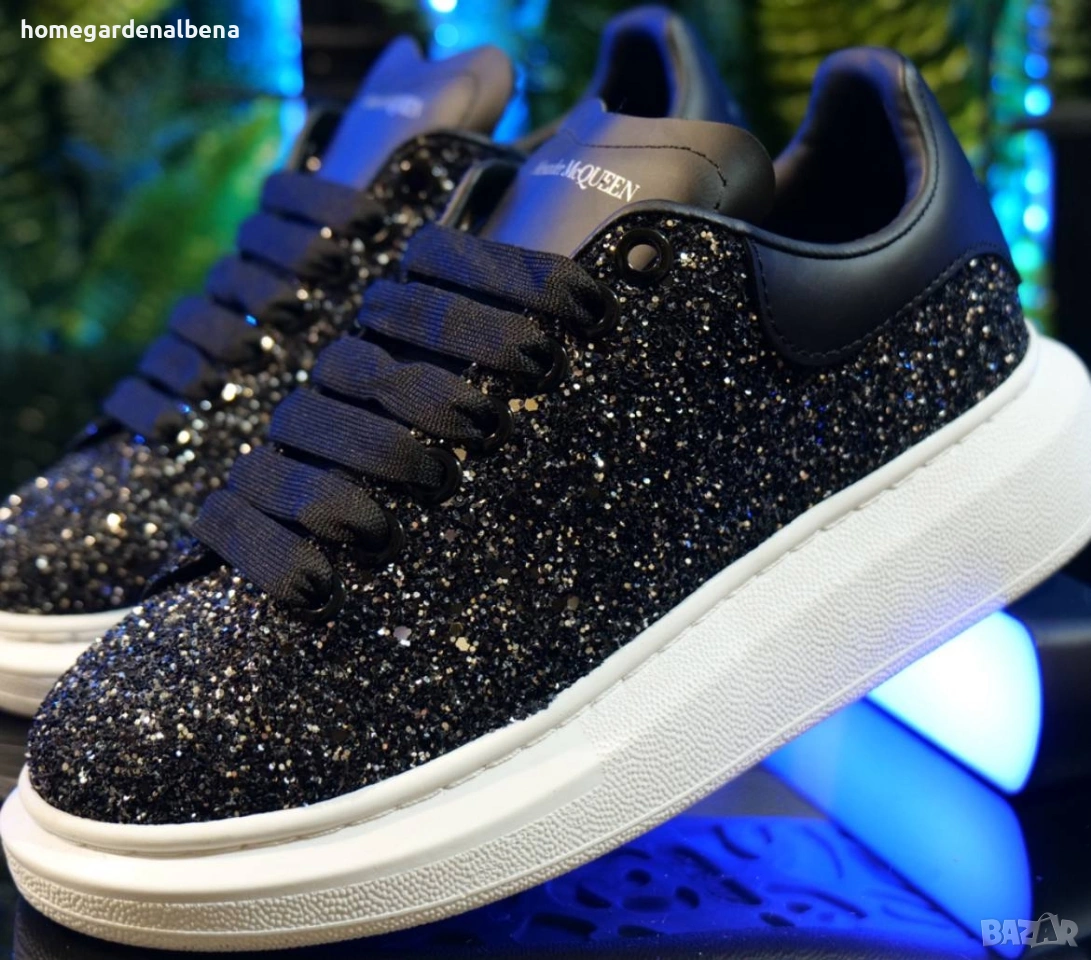 маратонки Alexander McQueen, дамски маратонки, черни маратонки с камъчета, глитър маратонки, платформени маратонки, McQueen обувки, луксозни маратонки, дамски обувки с блясък, маратонки с бяла подметка, дизайнерски обувки, маратонки размер 36 37 38 40, модни обувки дамски, маратонки България