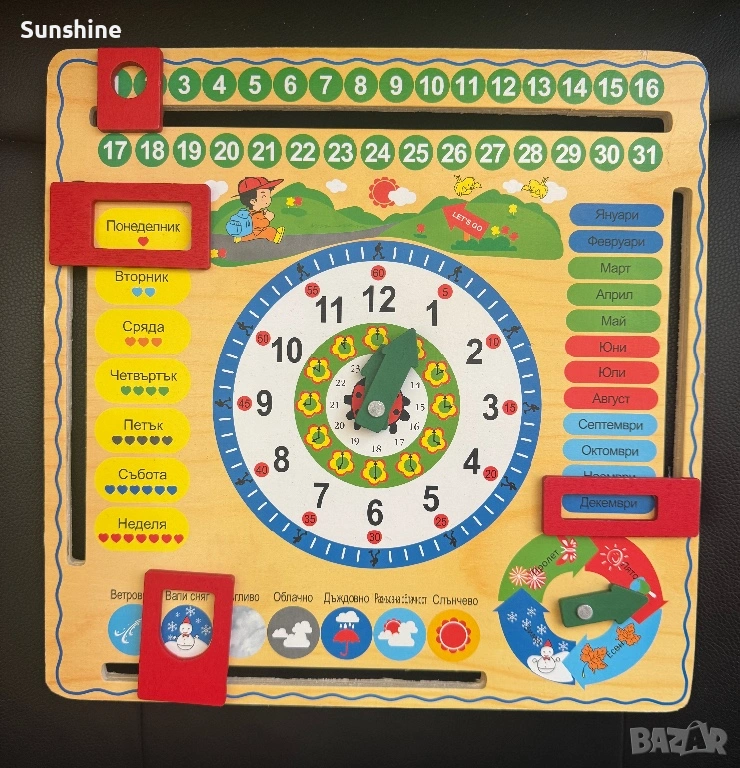 Дървен образователен часовник → Обява 54316335
