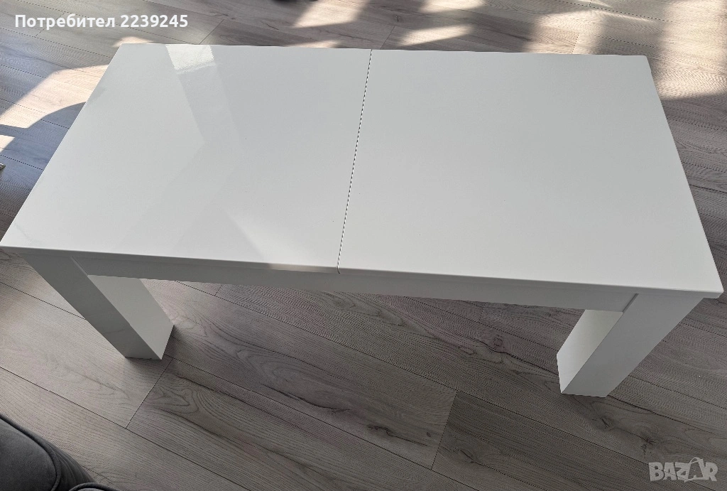 Продавам ниска разтегателна маса, бял гланц много е запазена купена от магазин ИДЕА