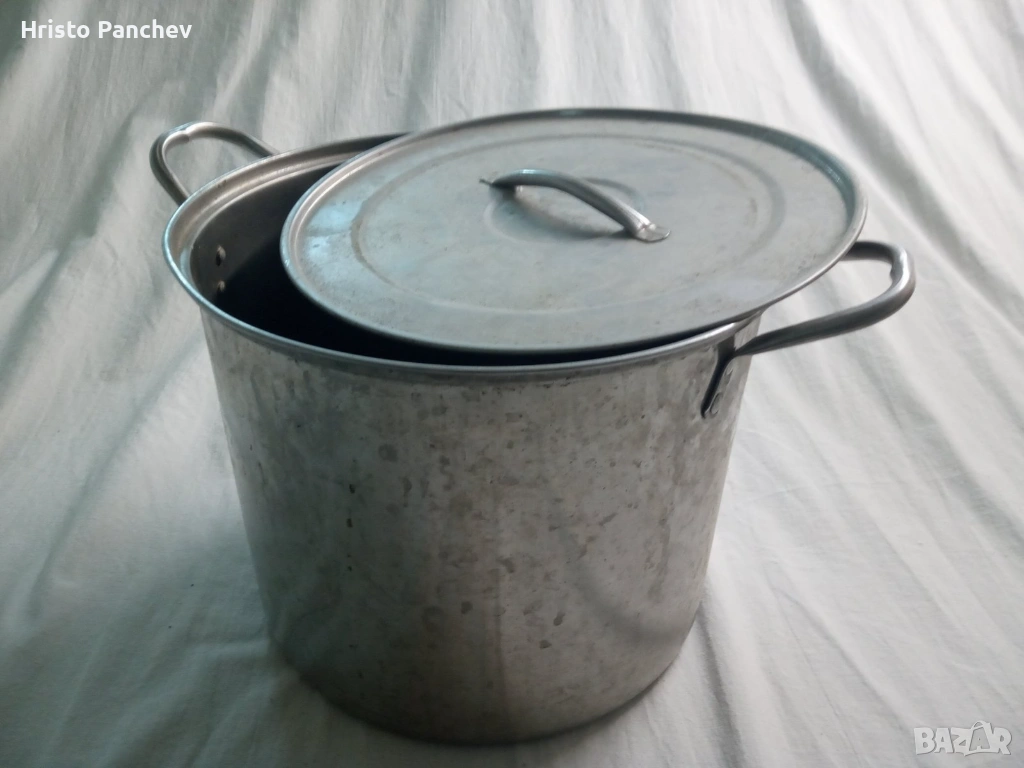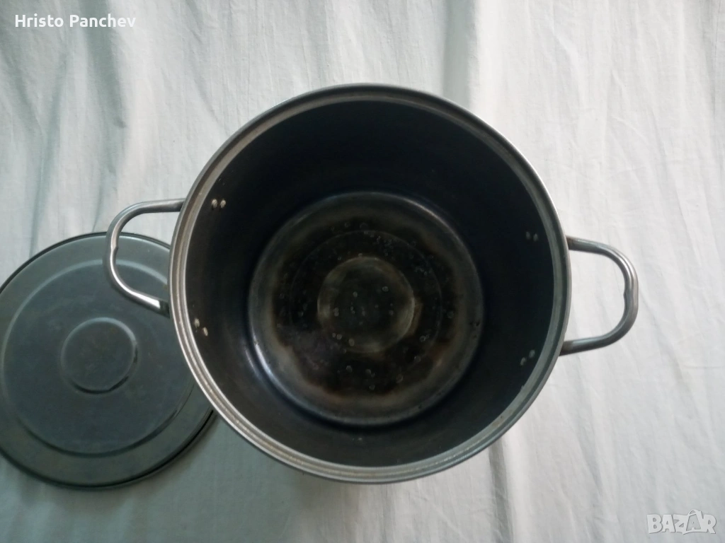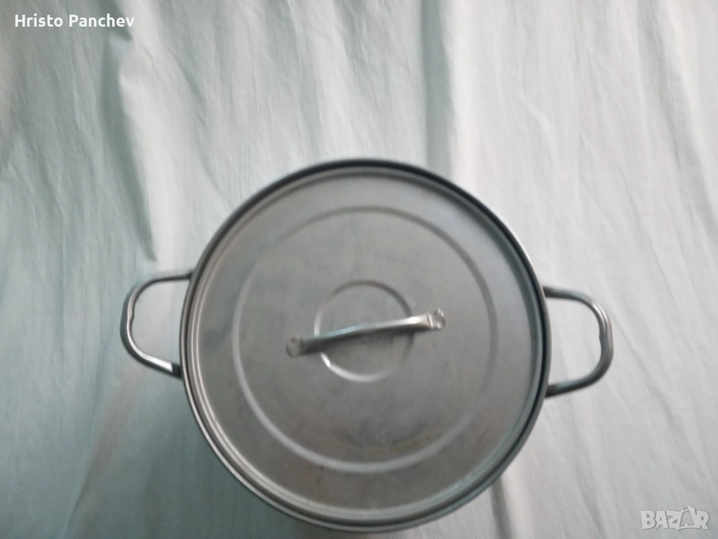 тенджера от неръждаем тънкостенен метал, 9 литра , употребявана . дълбочина 20 см, диаметър 24 см