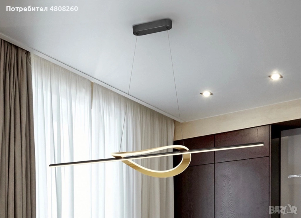 Продавам модерна LED висяща лампа с изчистен и наистина впечатляващ дизайн. Комбинацията от тънка светлинна линия и елегантен златист акцент я прави не просто осветление, а акцент в помещението.