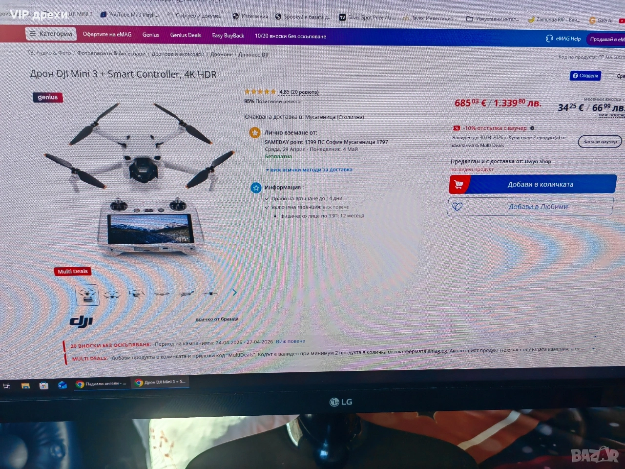 Купих дрона на 20.04.2026 пробвах го само и съм го настроил но понеже ми е първия дрон не бях проверил че няма сензори за препятствия а аз имам вила и съм в гориста местност и ме е страх да не го счупя .Дрона няма драскотна имам и допълнително кранче към него дистанционното е с екран има 2 години гаранция ще я предоставя може и клипче да ви направя че няма забележка както и че лети предполагам всеки се притеснява да не е падал пращам го с преглед и тест гаранцита е електронна ще я изпратя и нея при въпроси ми пишете или звъннете.Мога да го продам по евтино ако е без дистанционното .