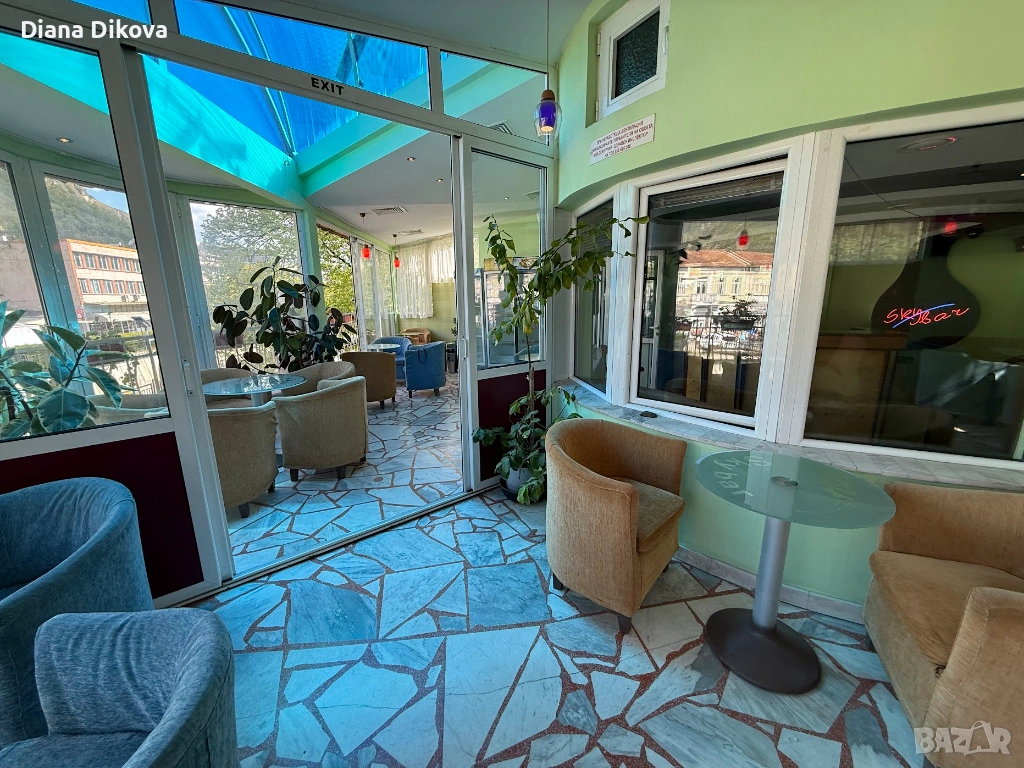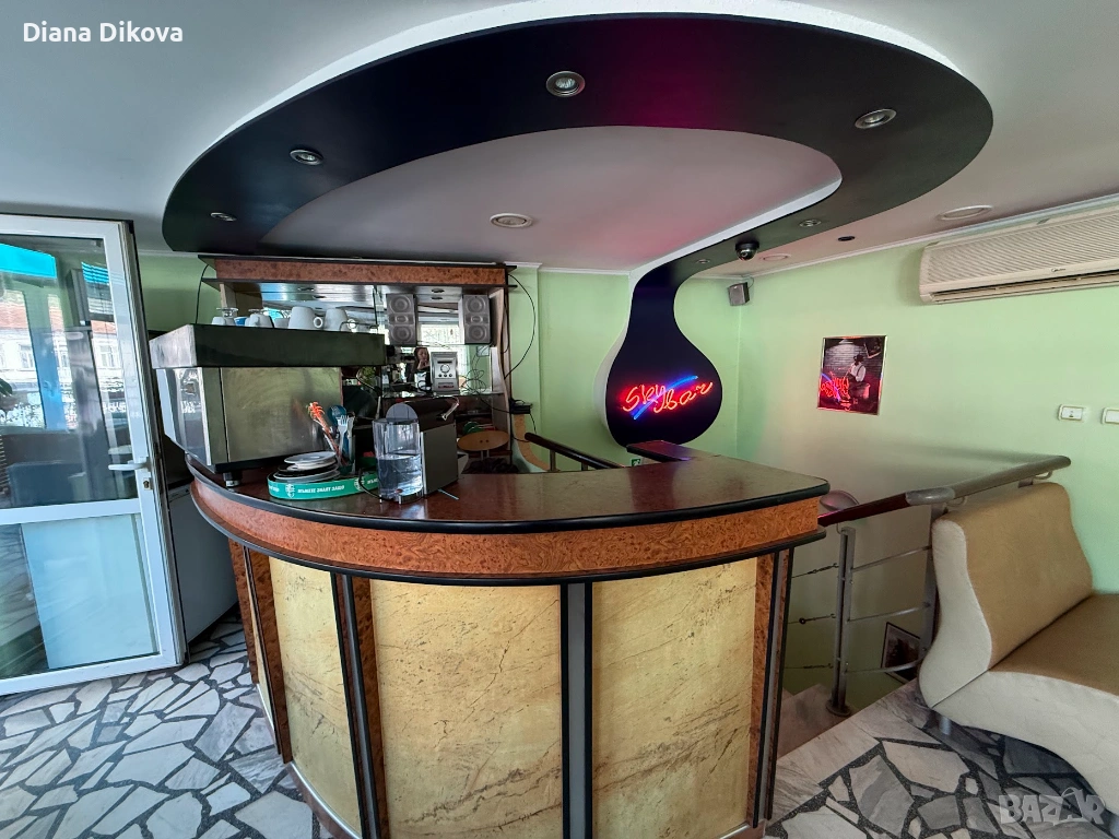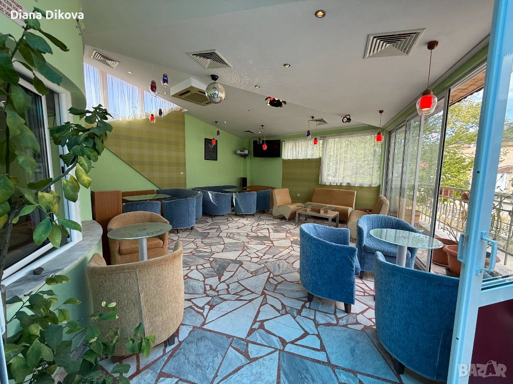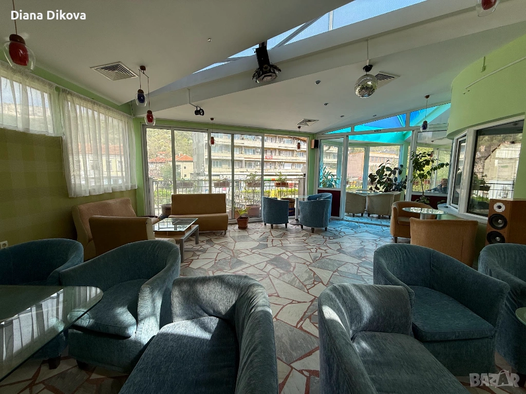 Пространството е светло и функционално, с обособена тераса и бар кът. Разполага с капацитет около 35–40 седящи места, като е възможно настаняване на повече гости при по-свободна организация.