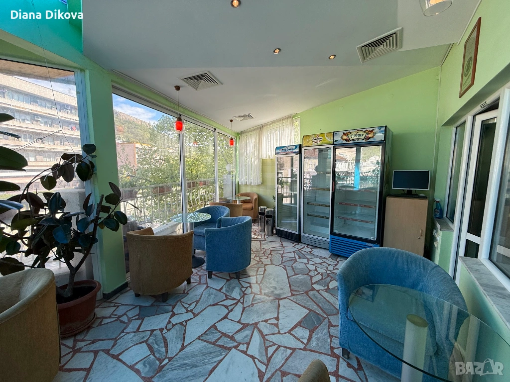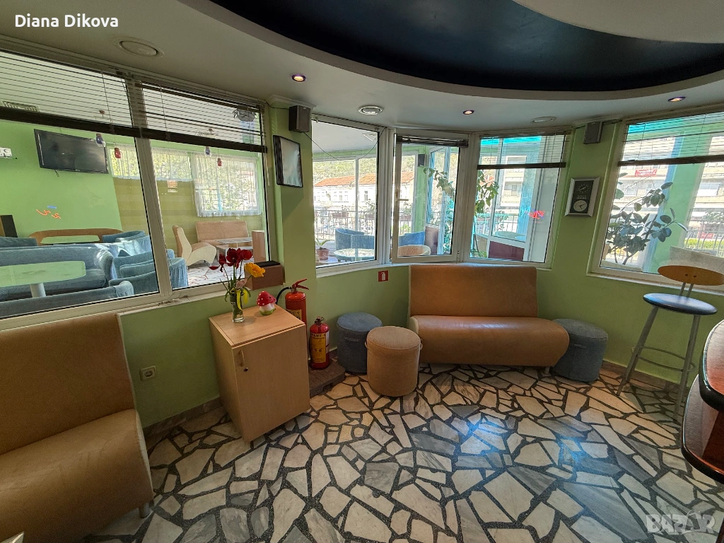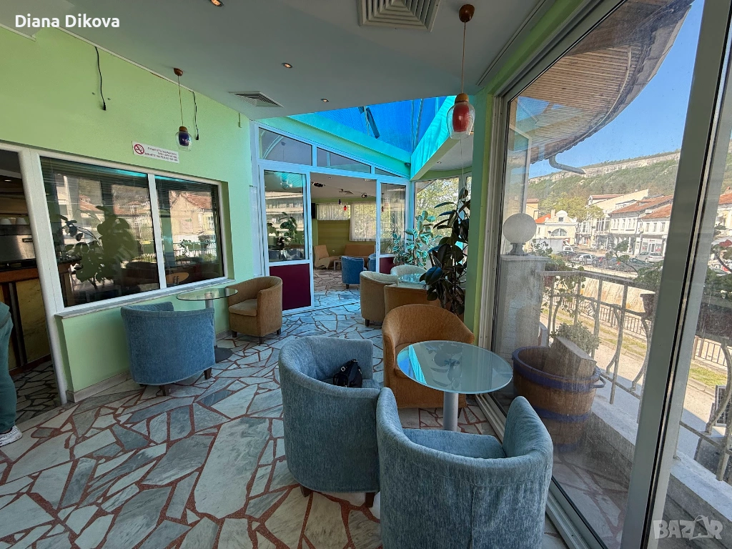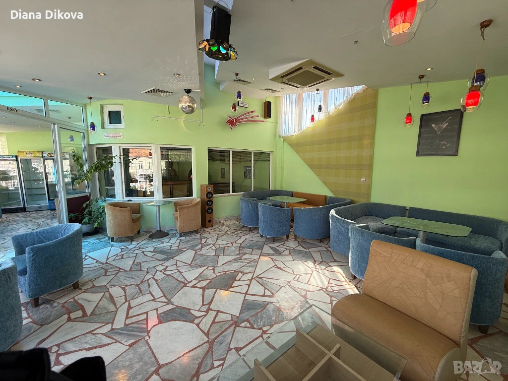 Пространството е светло и функционално, с обособена тераса и бар кът. Разполага с капацитет около 35–40 седящи места, като е възможно настаняване на повече гости при по-свободна организация.