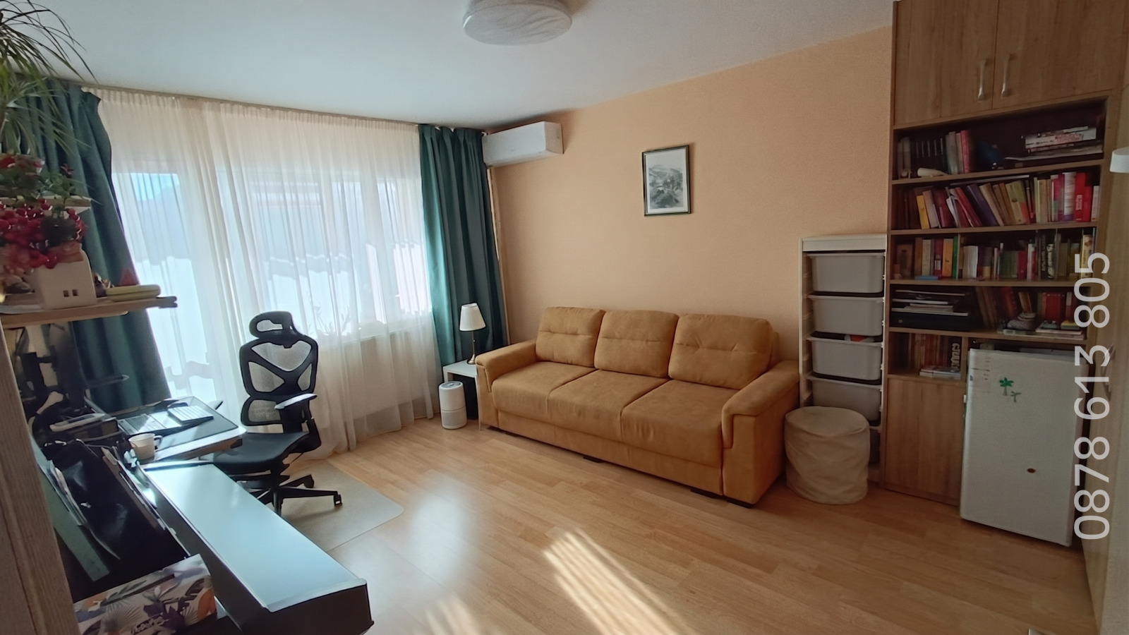 Ремонтиран, обзаведен с мебели по поръчка и нови електроуреди; термоизлоиран с немска външна изолация на стените и балкона, който е и остъклен. Има Wi-Fi-управляем климатик в хола.