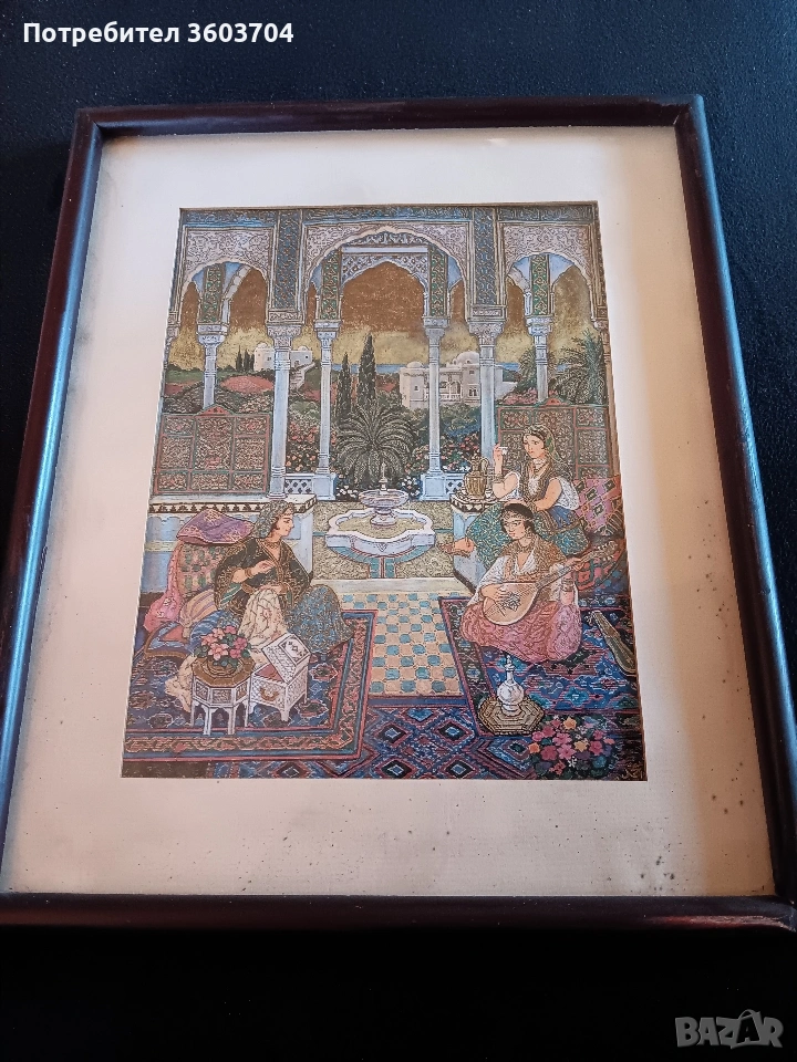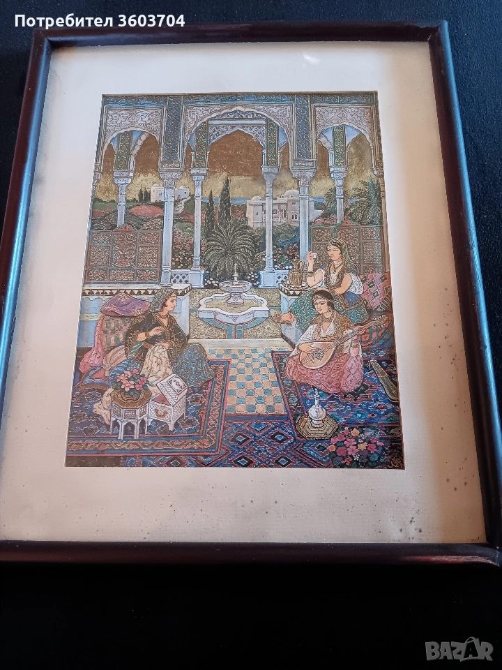 винтидж картина много прецизно изрисувано с прецизни елементи на стар арабски художник с размери 36 на 22 см дървена рамка всичко е уникално Благодаря ви за вниманието Разгледайте и другите мои обяви може нещо друго да харесате