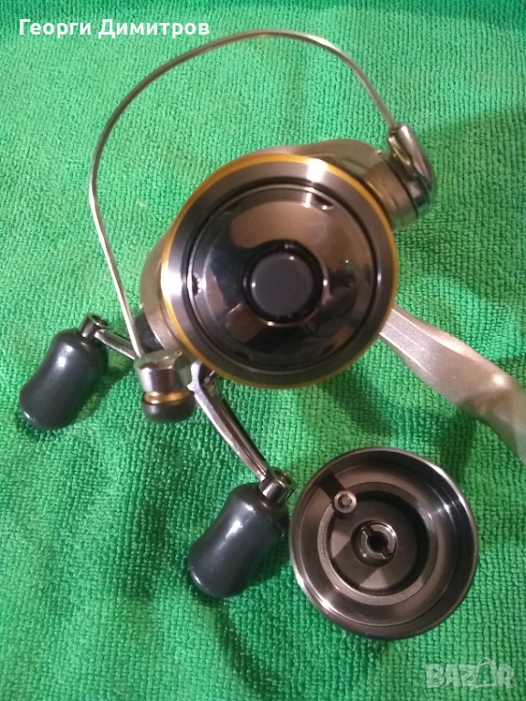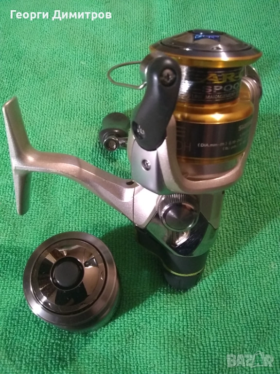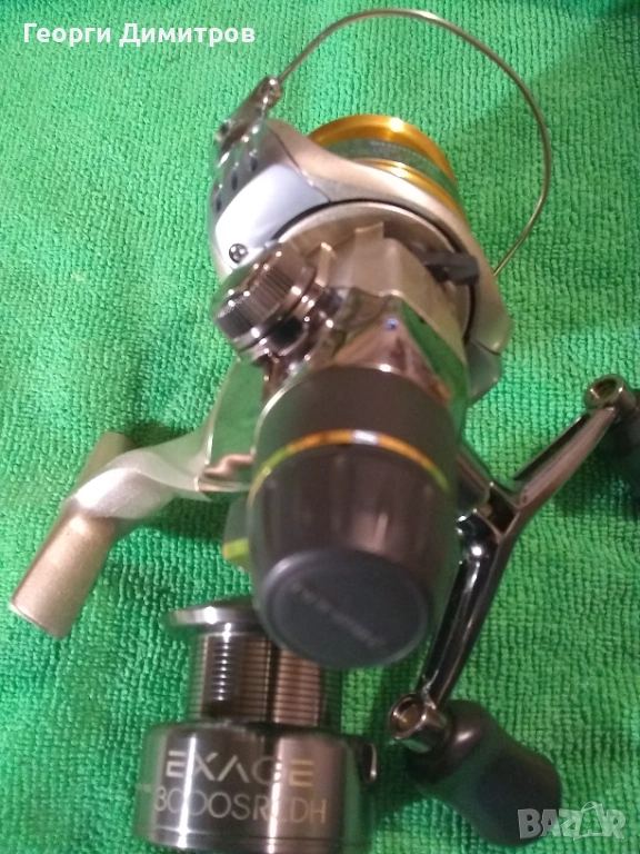 Shimano Exage 3000 SRCDH. След пълно обслужване за 16€ - почистена до последното винче и смазана с качествени лубриканти. Работи като нова, а другото се вижда от снимките. Продава се с резервна алуминиева шпула.