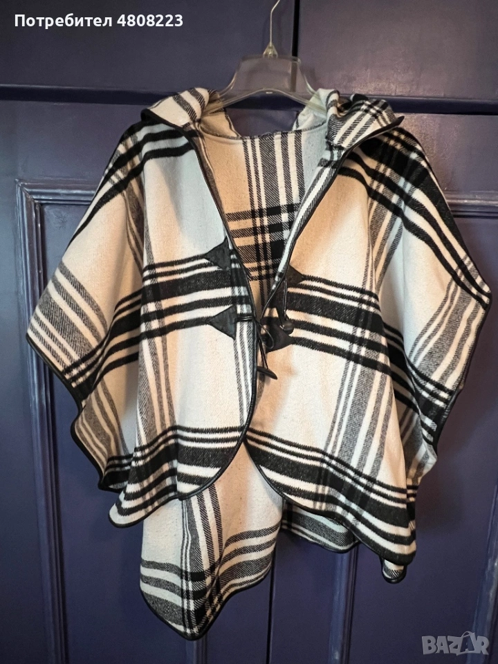 Карирано пончо, снимка 1 - Палта, манта - 54317794 Карирано пончо, снимка 2 - Палта, манта - 54317794 1/2