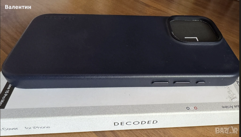 Продавам в перфектно състояние, почти като нов кожен калъф Decoted в цеят Navy Blue (Тъмно син) за iPhone 15 Pro Max.