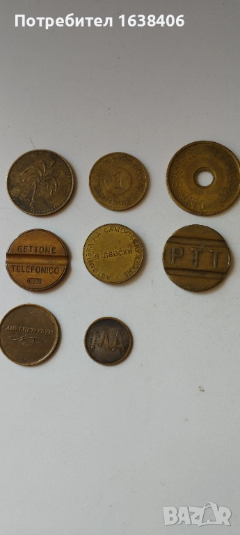 Лот стари жетони., снимка 1 - Нумизматика и бонистика - 54317972 Лот стари жетони., снимка 2 - Нумизматика и бонистика - 54317972 Лот стари жетони., снимка 3 - Нумизматика и бонистика - 54317972 Лот стари жетони., снимка 4 - Нумизматика и бонистика - 54317972 Лот стари жетони., снимка 5 - Нумизматика и бонистика - 54317972 1/5