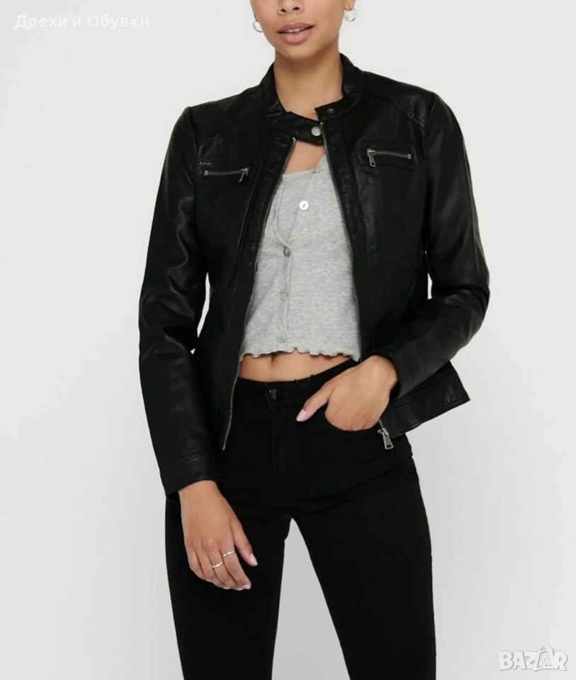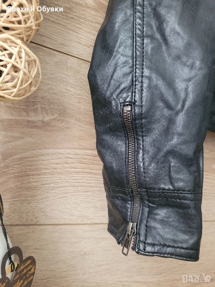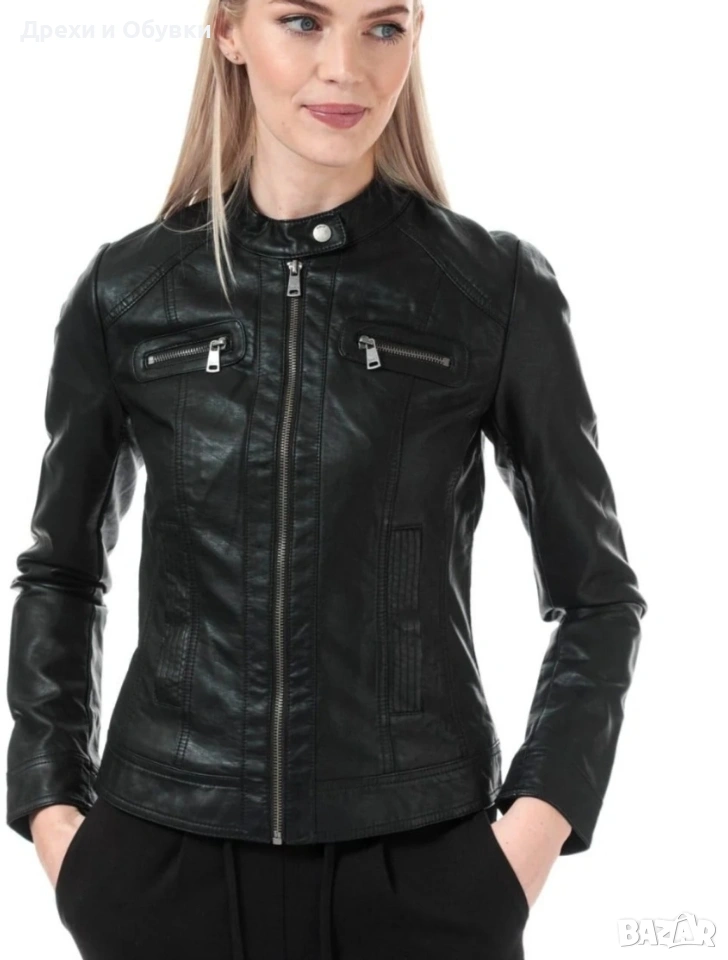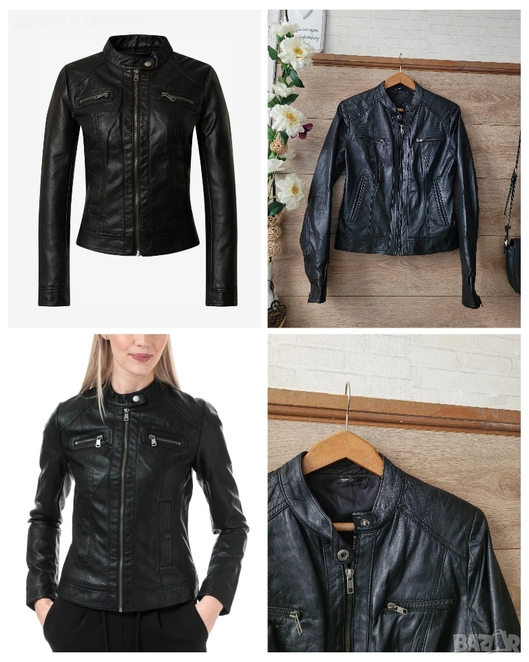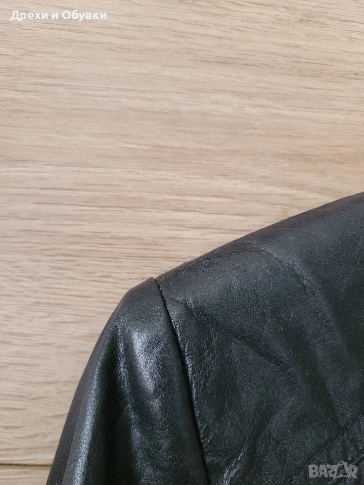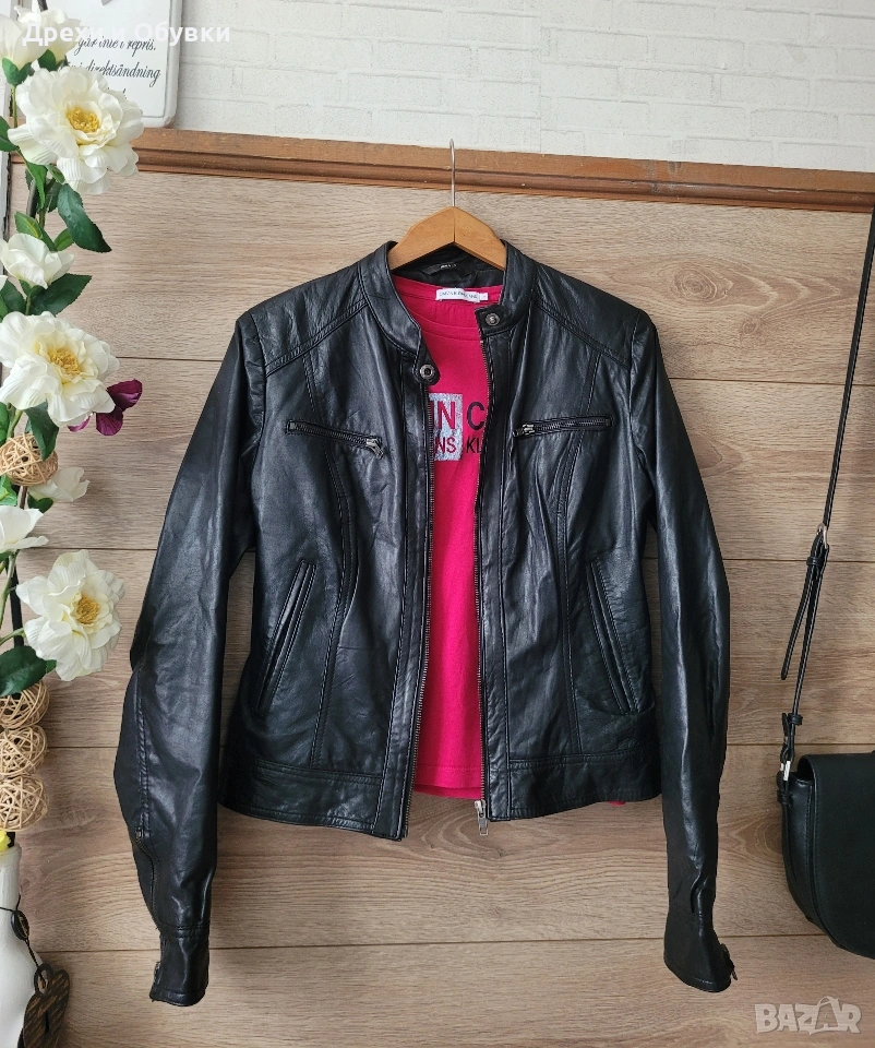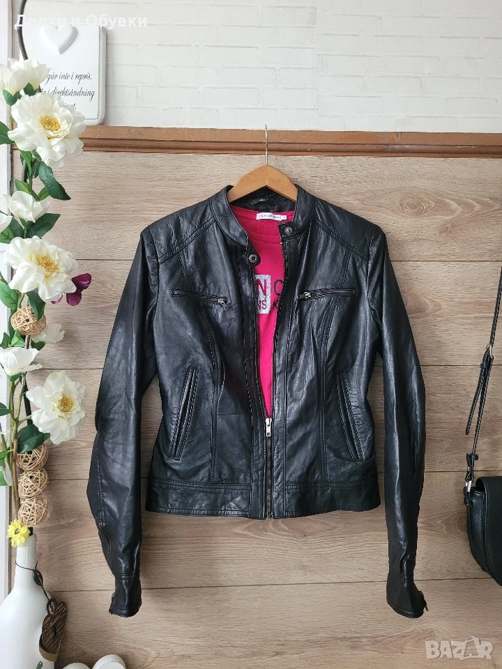 Стилно дамско яке от естествена кожа Hema в класически черен цвят. Моделът е с изчистен и елегантен дизайн, с цип отпред и на ръкавите. Два странични джоба и два с ципове Подходящо както за ежедневие, така и за по-елегантни визии. Размер: S, но е подходящо и за M Мерки: дължина 54см, гръдна 98-100см Състояние: много добро, без забележки Перфектен избор за сезон пролет/есен или по-хладни летни вечери. Цена 42€