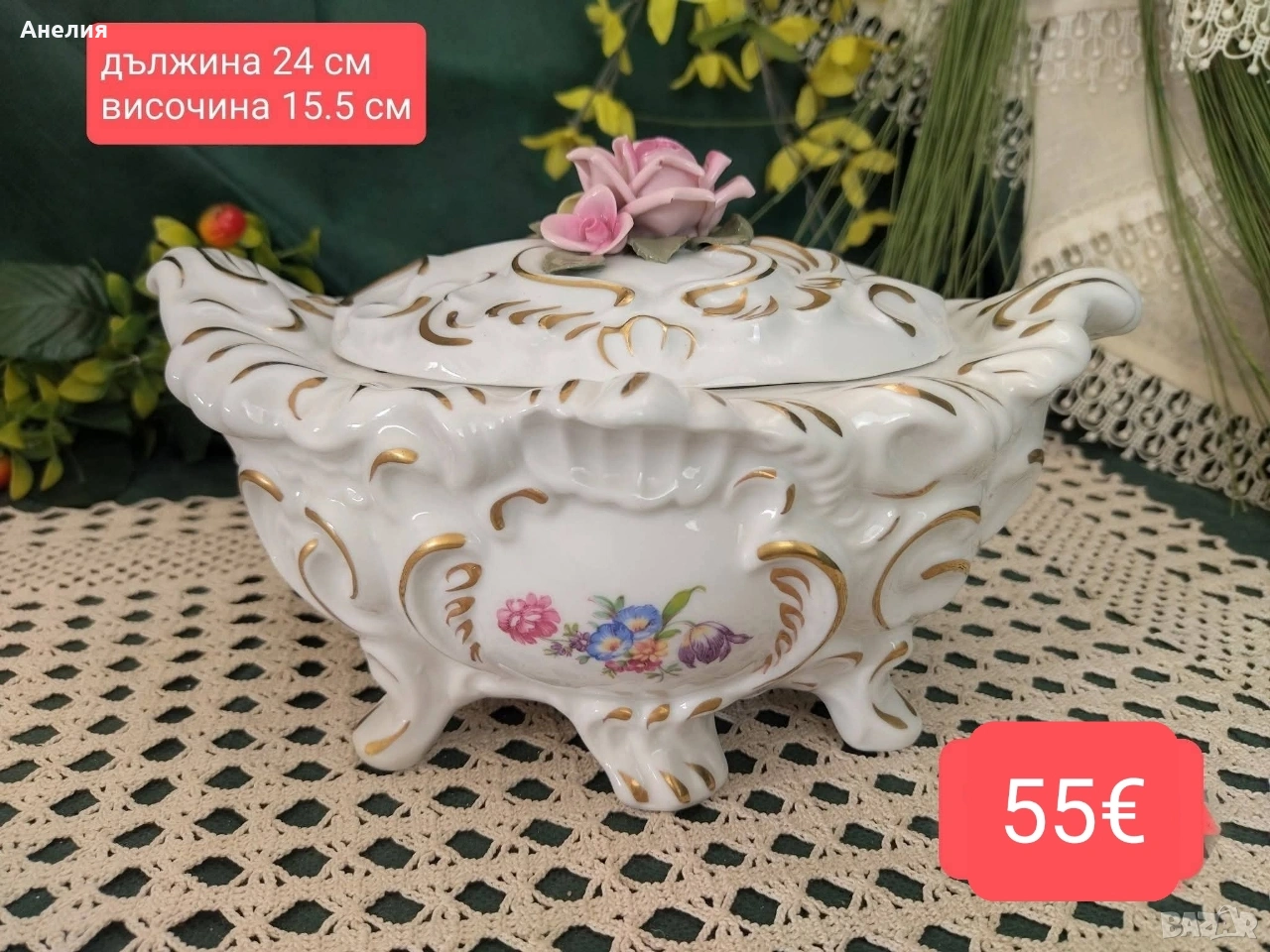 с 3де цветя,релеф и злато.