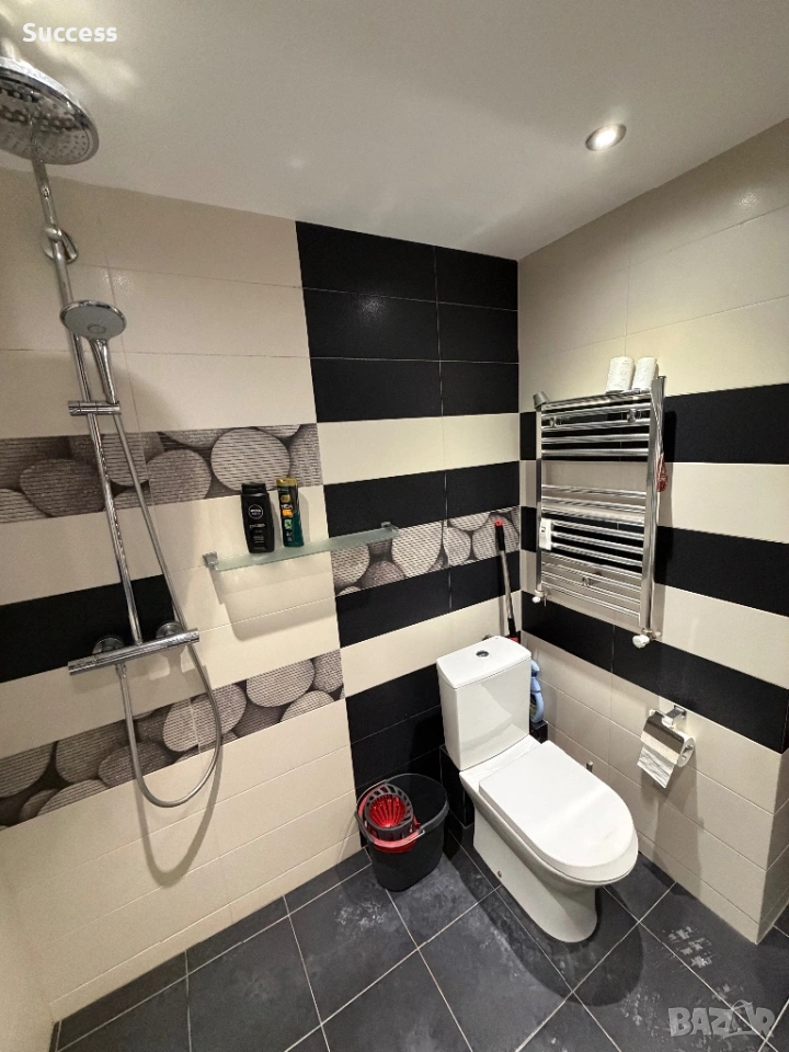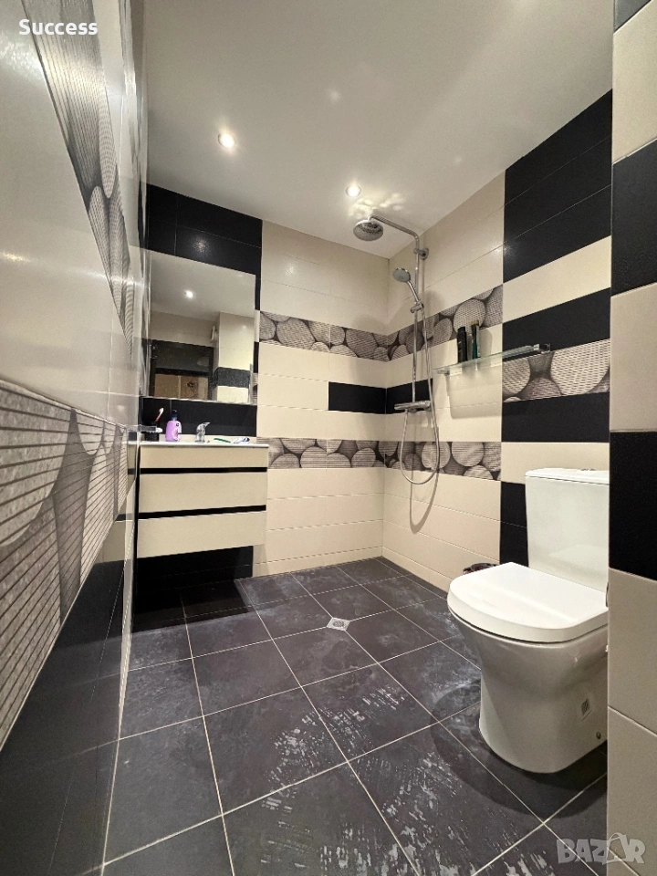 Апартаментът се предлага с частично обзавеждане, включително нов ъглов диван и секция в хола. Банята е в модерен, завършен вид.