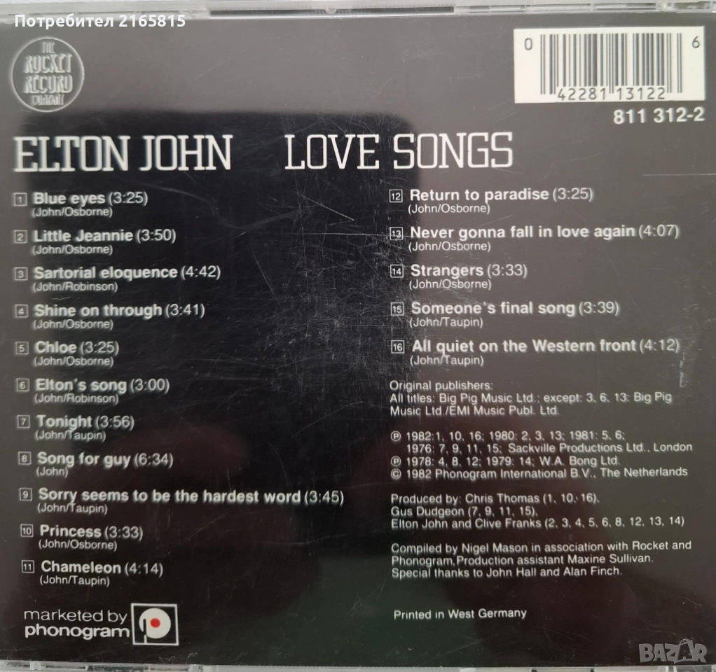 Elton John Love songs CD compilation → Обява 54318425