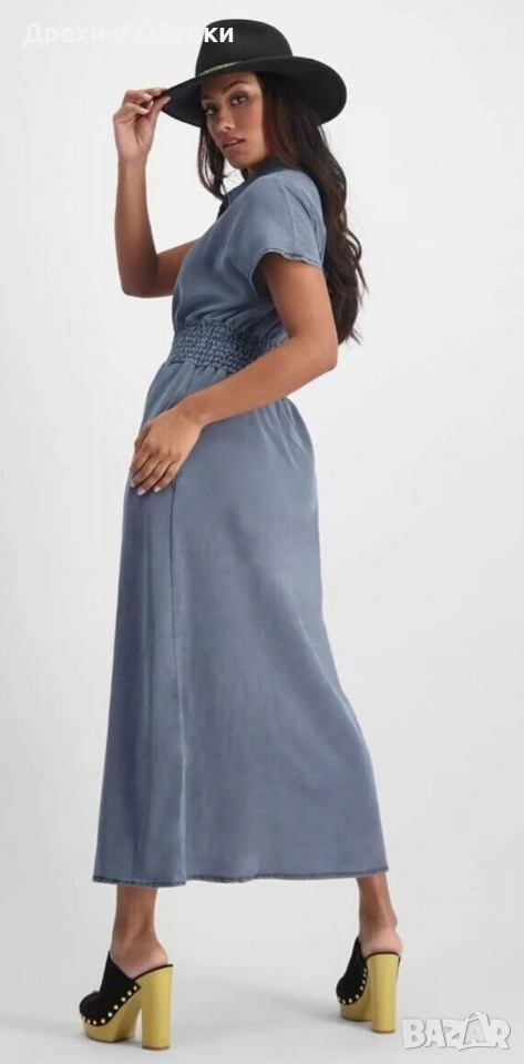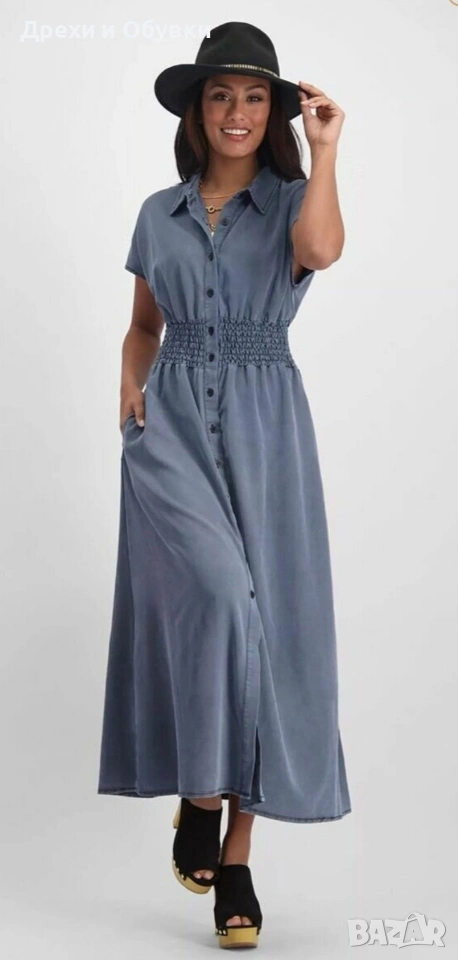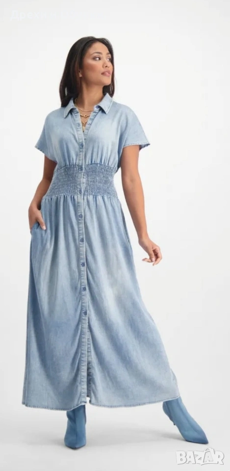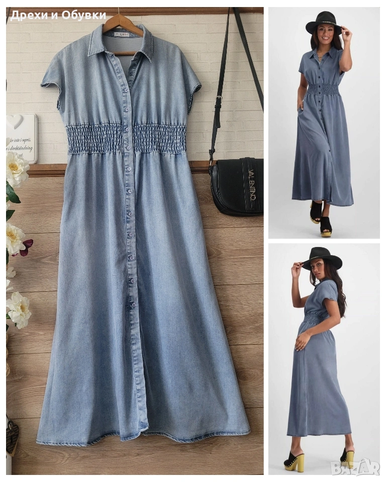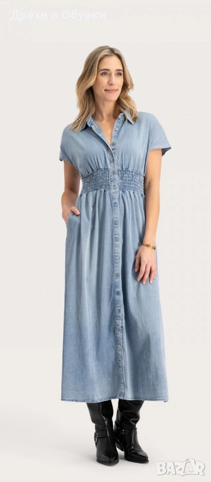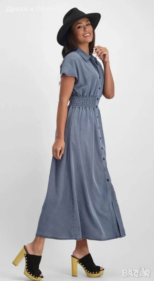 👗 Дънкова рокля FLOREZ с джобове Стилна и удобна дънкова рокля с копчета по цялата дължина и еластична талия, която подчертава фигурата. Моделът е с къс ръкав и практични странични джобове – перфектна комбинация от комфорт и елегантност. Подходяща както за ежедневието. ✨ Характеристики: • Марка: FLOREZ • Материя: мека и лека деним тъкан • Кройка: свободно падаща, с ластик в талията • Закопчаване: копчета отпред • Джобове: да 📏 Отговаря на размер М Мерки: Гръдна до 100см ( носи се свободно), дължина 130см, талия на широк ластик в свободно положение 42м ( едностранно). ✔️ Без ограничения в раменете ✔️ Състояние: отлично като нова! 💙 Лесна за комбиниране с кецове, сандали или обувки на ток за различни визии. Цена 24€