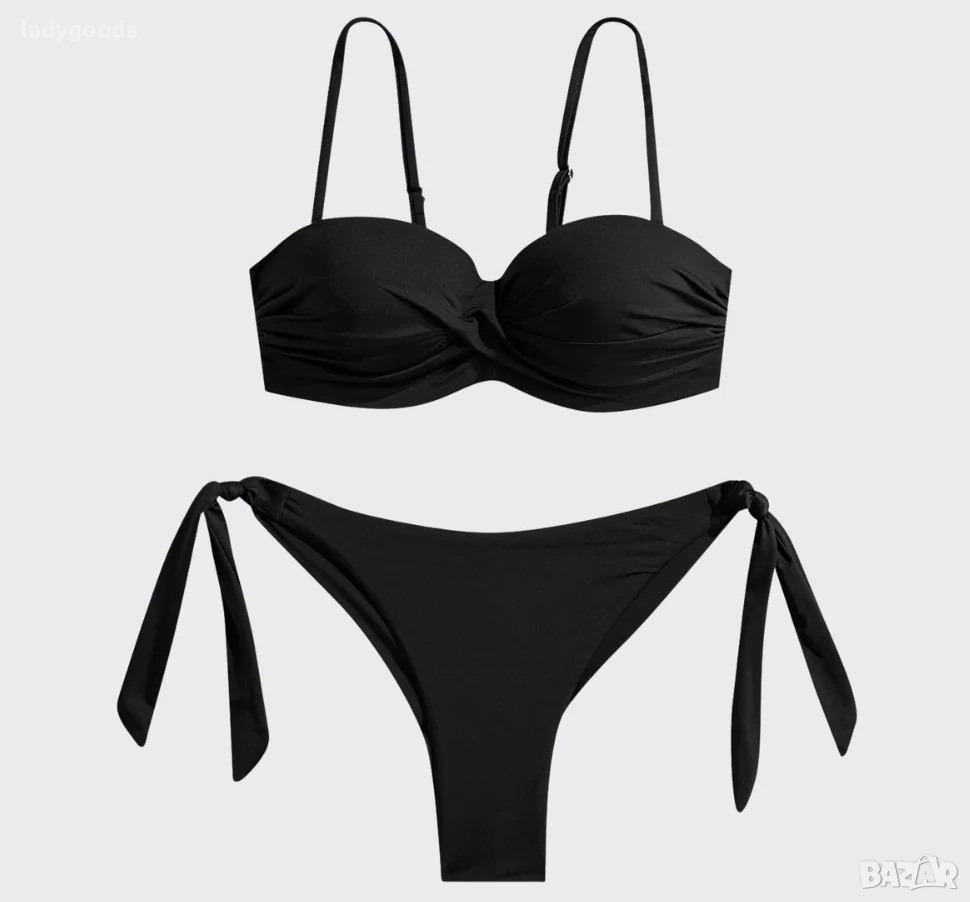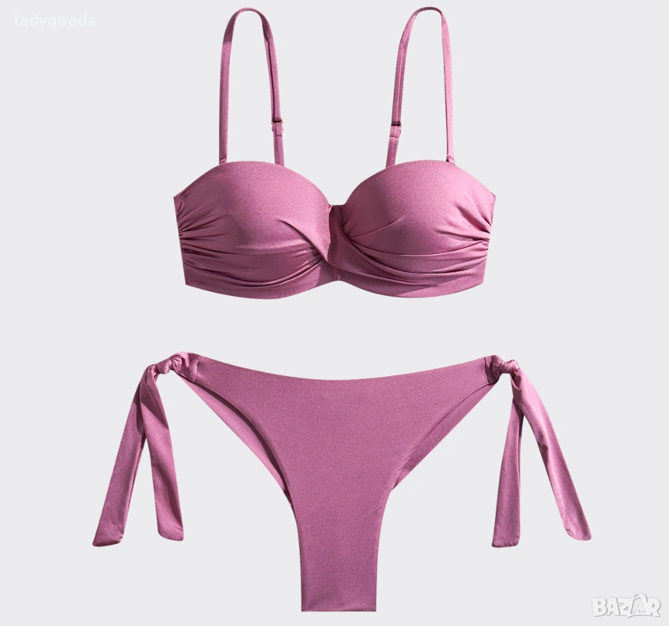 Бански костюми,с горна част тип "бриджитка". която оформя и подчертава бюста, без да е необходима презрамка.В комплекта са налични и презрамки,за по-добра стабилност. Долната част е тип "Бразилиана", с връзки,така че да регулирате ханша по най-добрия за вас начин.Идеални за изчистена и елегантна визия.