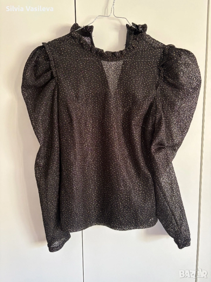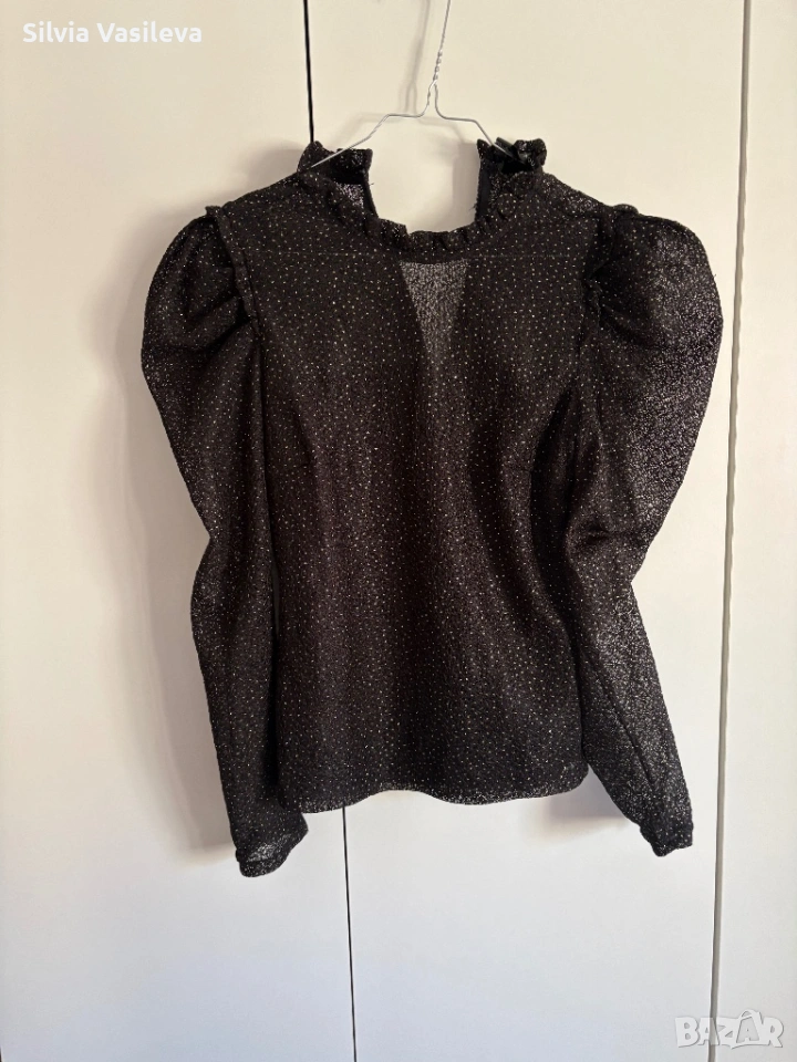 Елегантна блузка черна с лъскав ефект има подплата за да не прозира размер XS/S полиестер