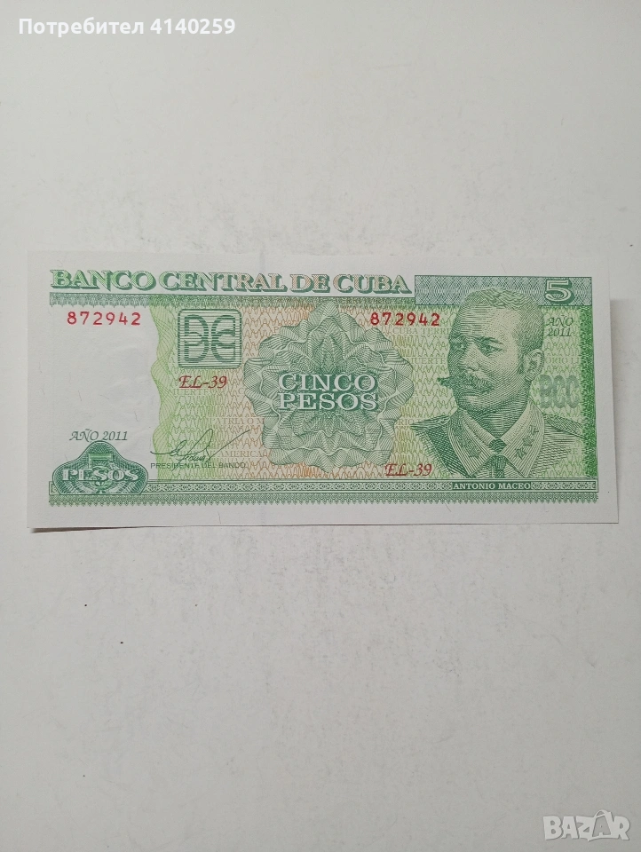 КУБА БАНКНОТА 5 ПЕСО 2011 Г СЪСТОЯНИЕ НОВО ПОЛУЧАВАТЕ СНИМАНАТА БАНКНОТА РАЗГЛЕДАЙТЕ ДРУГИТЕ МИ ОБЯВИ ДА КОМБИНИРАТЕ ДОСТАВКА ЕКОНТ ЗА ВАРНА ЛИЧНО