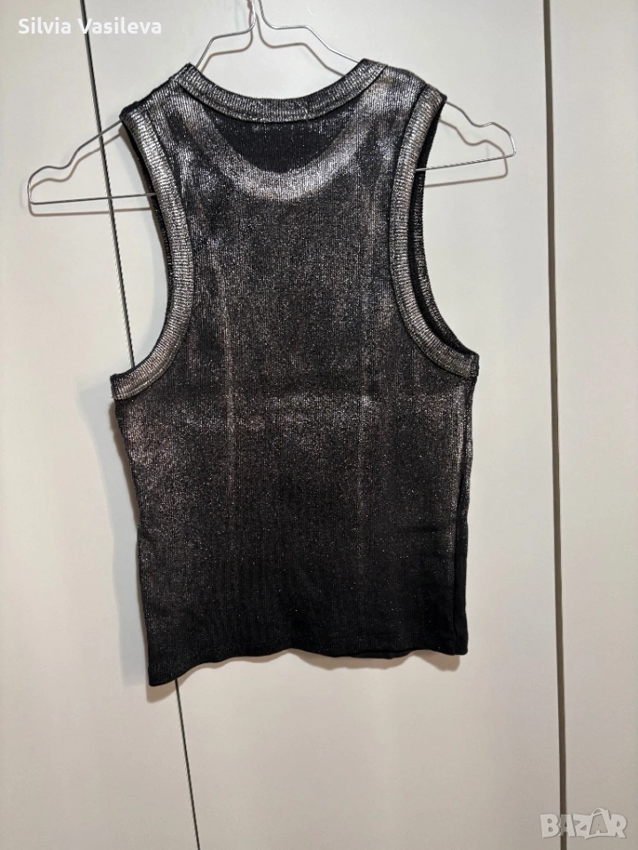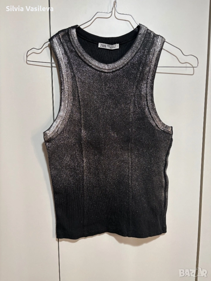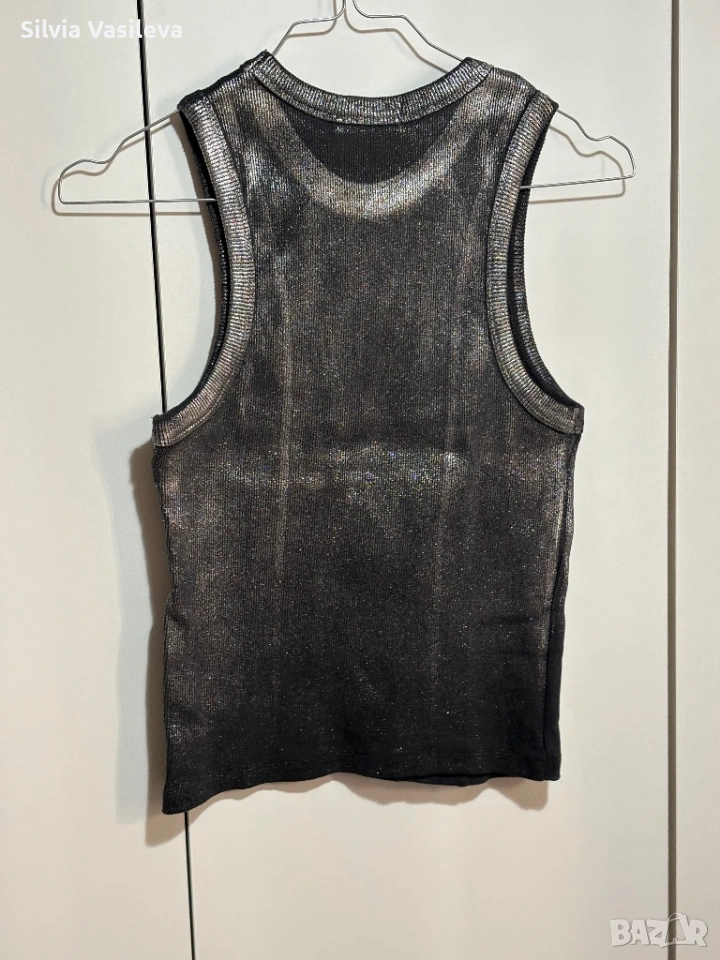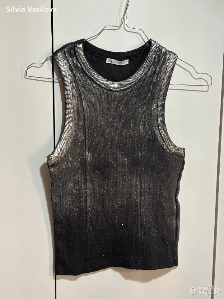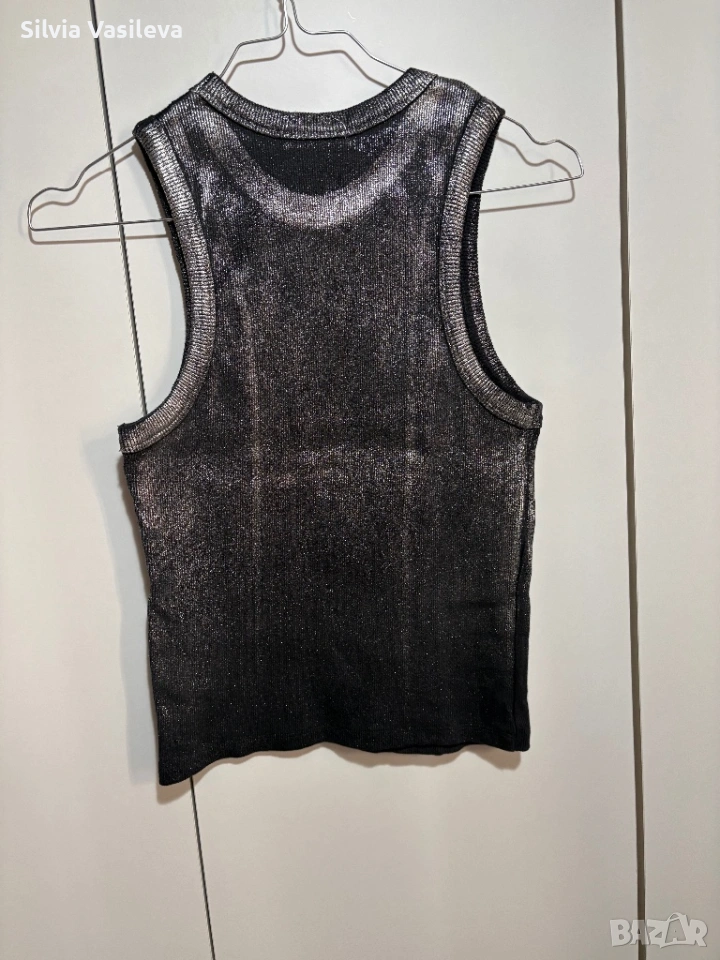 Дамски потник Zara сребрист метален ефект нов без етикет размер M отговаря на S 98% памук 2 еластан