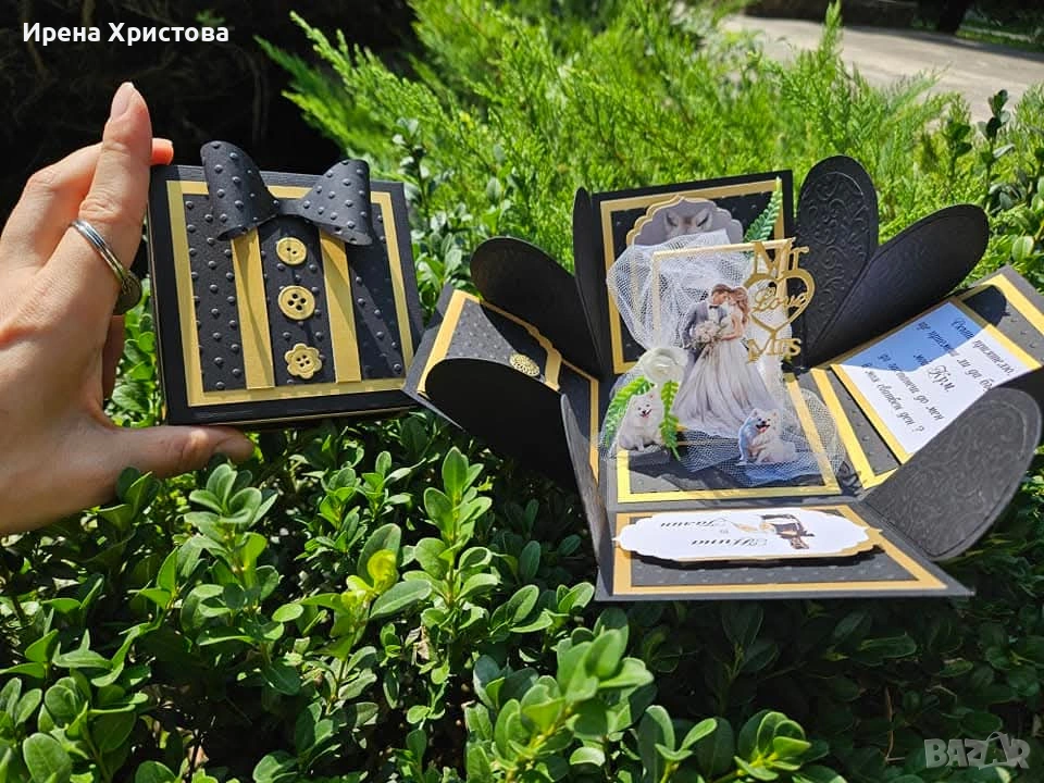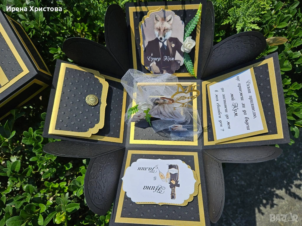 Кутията-изненада е един различен и оригинален начин да поканите вашите кумове. Тя ще остане скъп спомен от вашия специален ден.