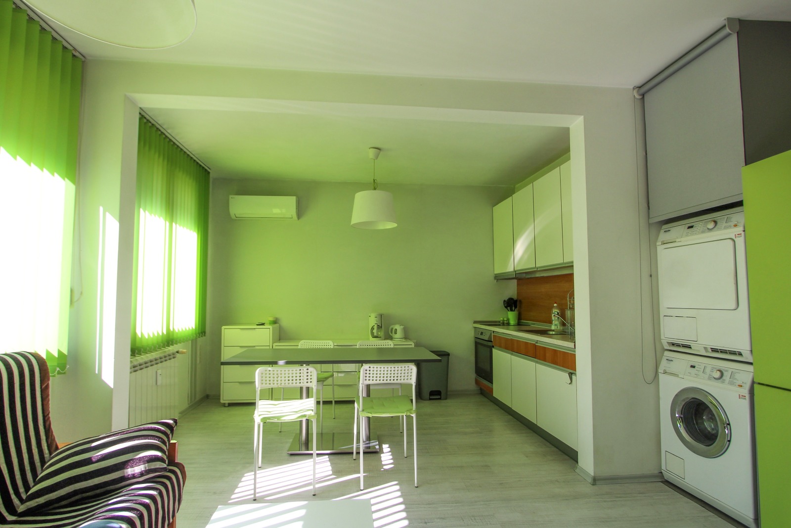 - Тристаен апартамент под наем , изключително стилен и модерен , намиращ се в тухлена кооперация от седемдесетте години на пряка на ул. ' Оборище ' , на броени метри от mall ' Сердика ' , в близост до различни учебни заведения , търговски обекти , както до множество други удобства и комуникации.