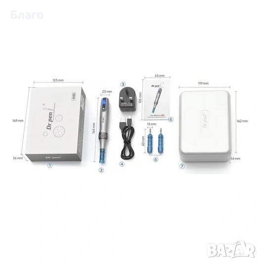 Устройство за микронидлинг Dr. Pen M8S с възможност за презареждане на батерията. Нов продукт- фаблично запечатан с фолио. Под фолиото се намира скреч лепенка, която след като я изтриете се появява инвидуален номер на продукта, който може да регистрирате на официалния сайт за гаранцията на продукта. Там има и подробни видиа за това как да използвате продукта в домашни условия. Предназначен за кожни проблеми като белези от акне, дълбоки белези, стрии, бръчки, тъмни петна, признаци на стареене, отпусната кожа, петна,