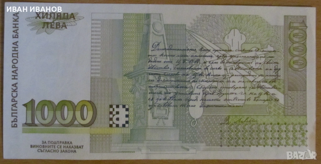 1000 лева 1996 година - UNC → Обява 54320448