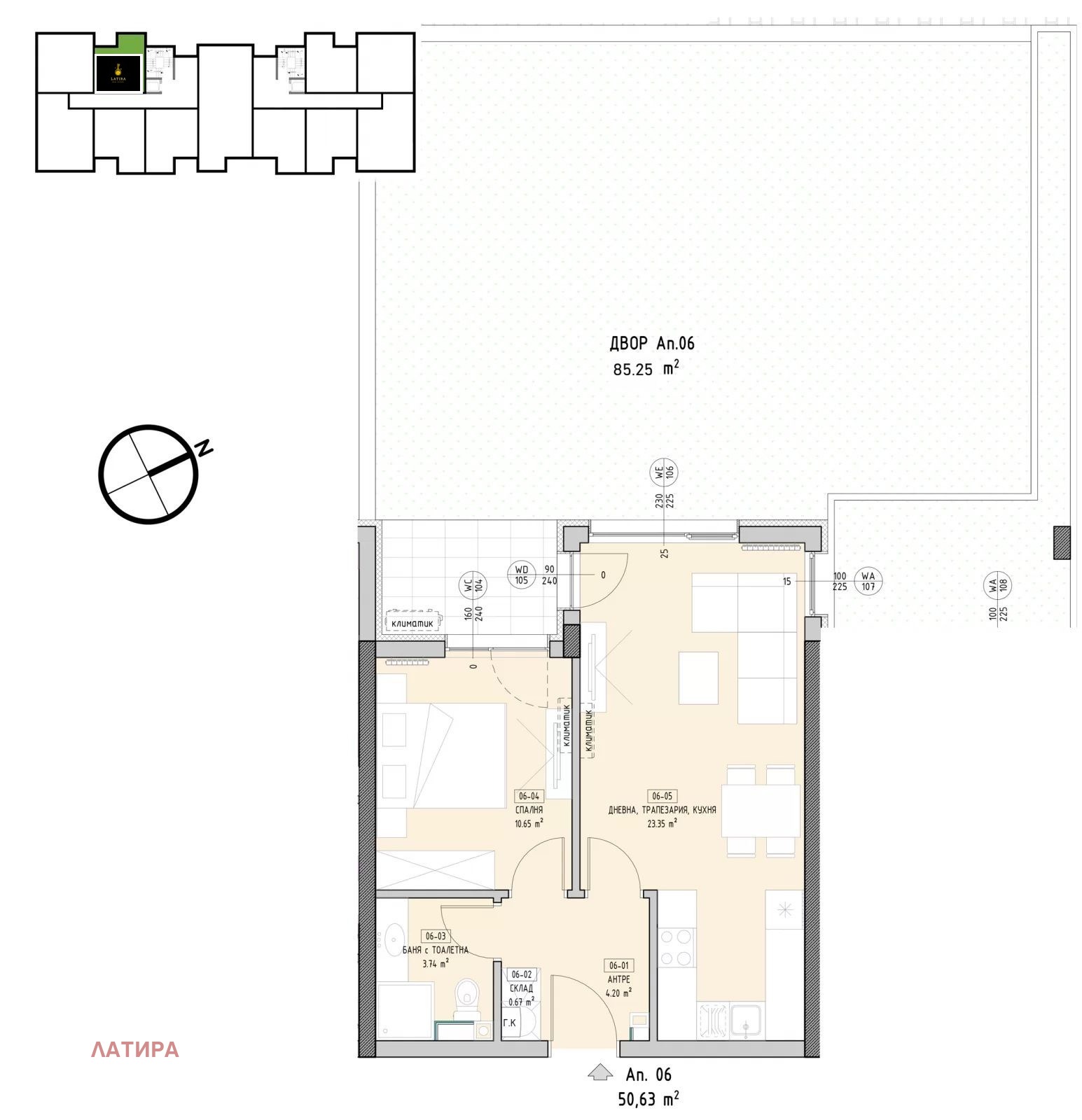 Агенция за недвижими имоти LATIRA ESTATE има удоволствието да Ви представи просторен 2-стаен апартамент със собствен двор от 90 кв.м. в централната част на предпочитаният кв. Мали
