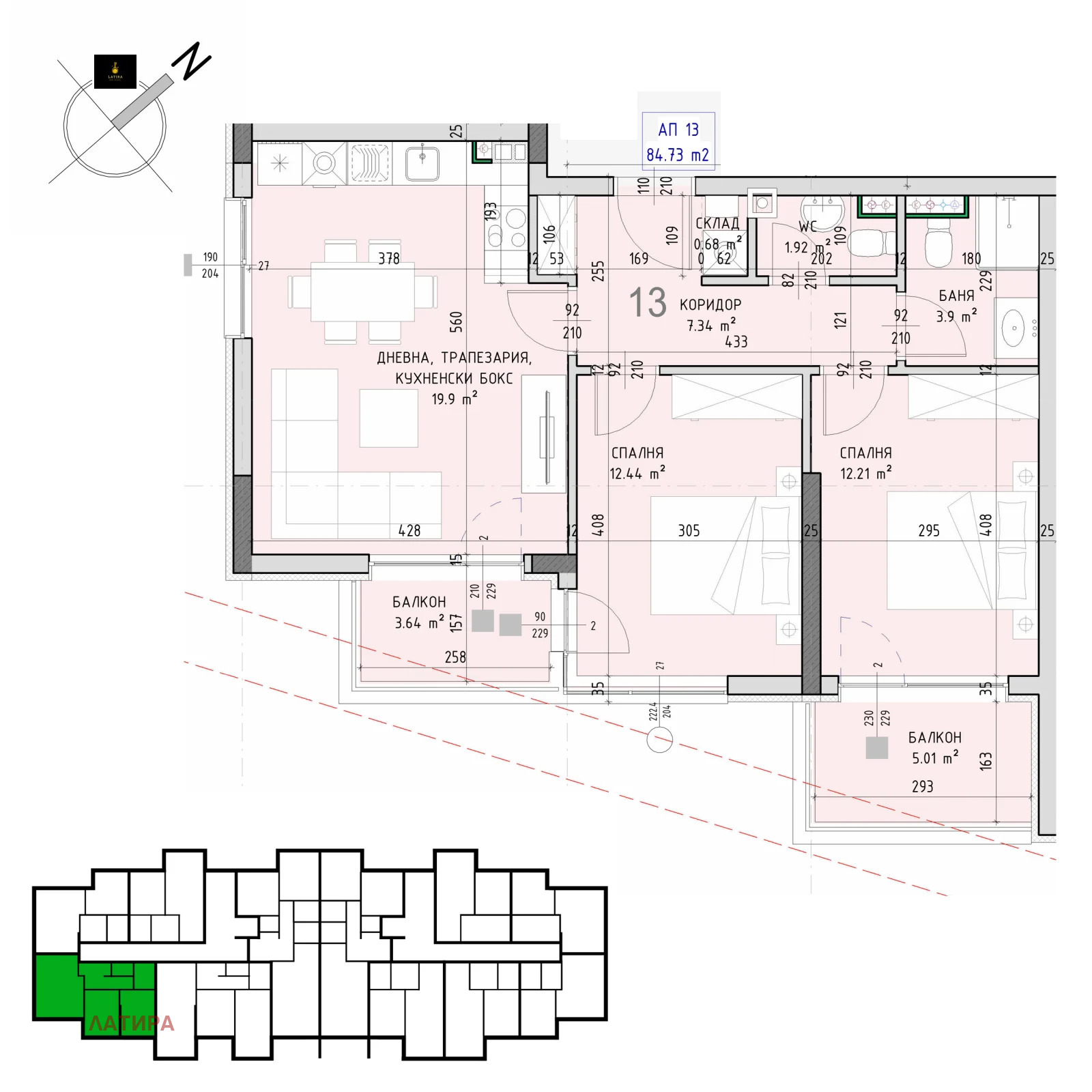 *Площ на апартамента 97.93 кв.м.