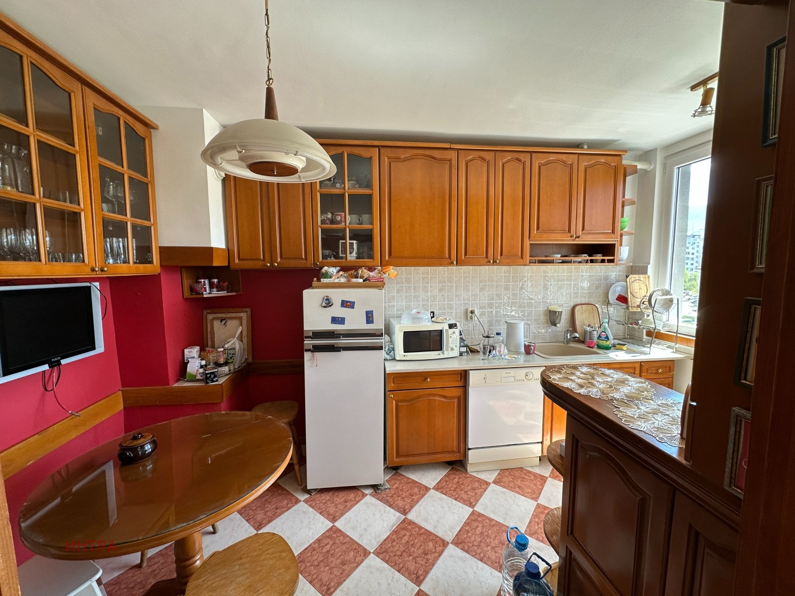 Предлагаме на вниманието ви чудесен просторен тухлен апартамент в близост до болница Доверие, непосредствено до спирка на метро, супермаркети, фитнес и три детски градини. Състои се от просторна дневна с трапезария и голяма тераса, остъклена с дограма тип плисе , което позволява през лятото терасата да бъде напълно открита за красивата гледка, която се открива пред нея( има и тента); голям коридор с 6 метров гардероб, две спални и два санитарни възела. Жилището е напълно обзаведено с всичко необходимо. Настилките са естествен паркет и гранит. Алуминиева дограма. Изложението е изцяло южно, има 20 см. външна изолация и нови климатици клас А+++, което обуславя изключително ниските разходи за отопление! Проточен бойлер 28 квт. СОТ инсталация, охраняван вход с ограничен достъп, широки стълбищни площадки и редовно почистване на общите части. Два асансьора-един товарен и един пътнически. Домашни любимци не се предпочитат. Жилището се отдава дългосрочно. Възможност за гараж! За контакти: 0888350323 Руслан Беров
