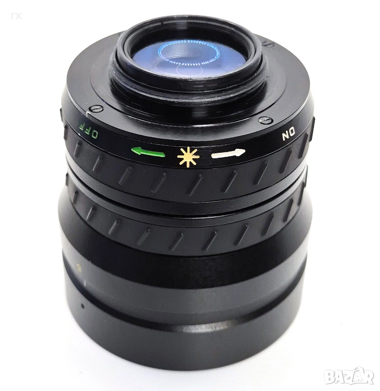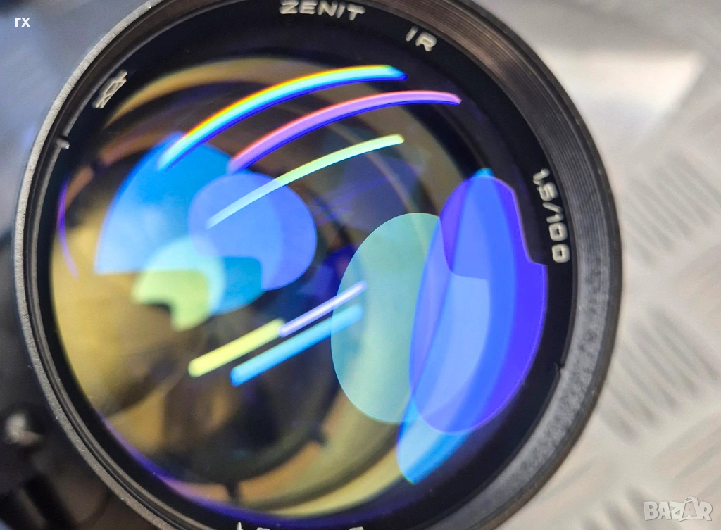 легендарен съветски обектив с голяма светлосила Zenit IR 100mm f/1.5. Обективът е в отлично визуално и техническо състояние. Лещите са чисти, без драскотини и гъбички, със запазено синьо-лилаво покритие (multi-coating), оптимизирано за инфрачервения спектър.